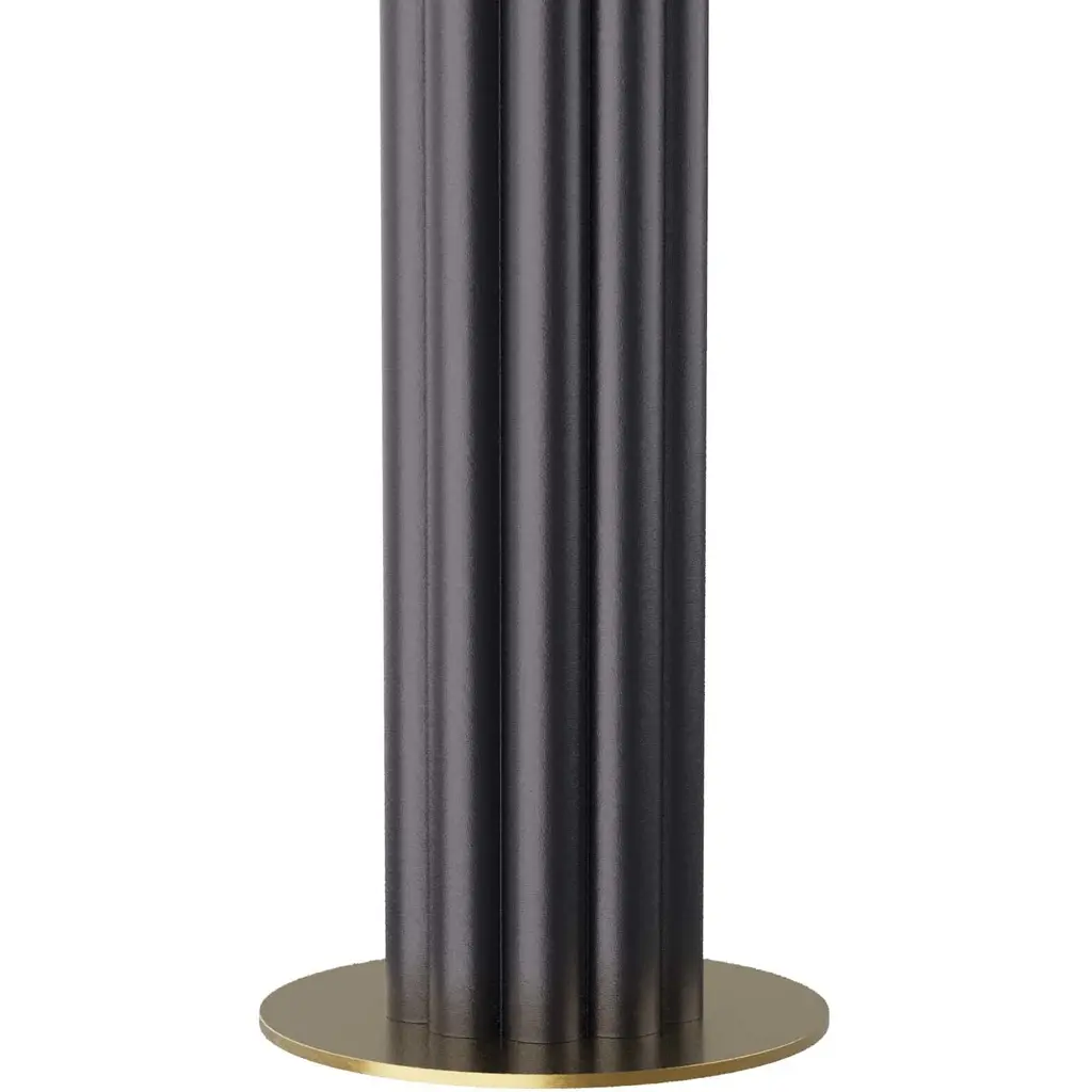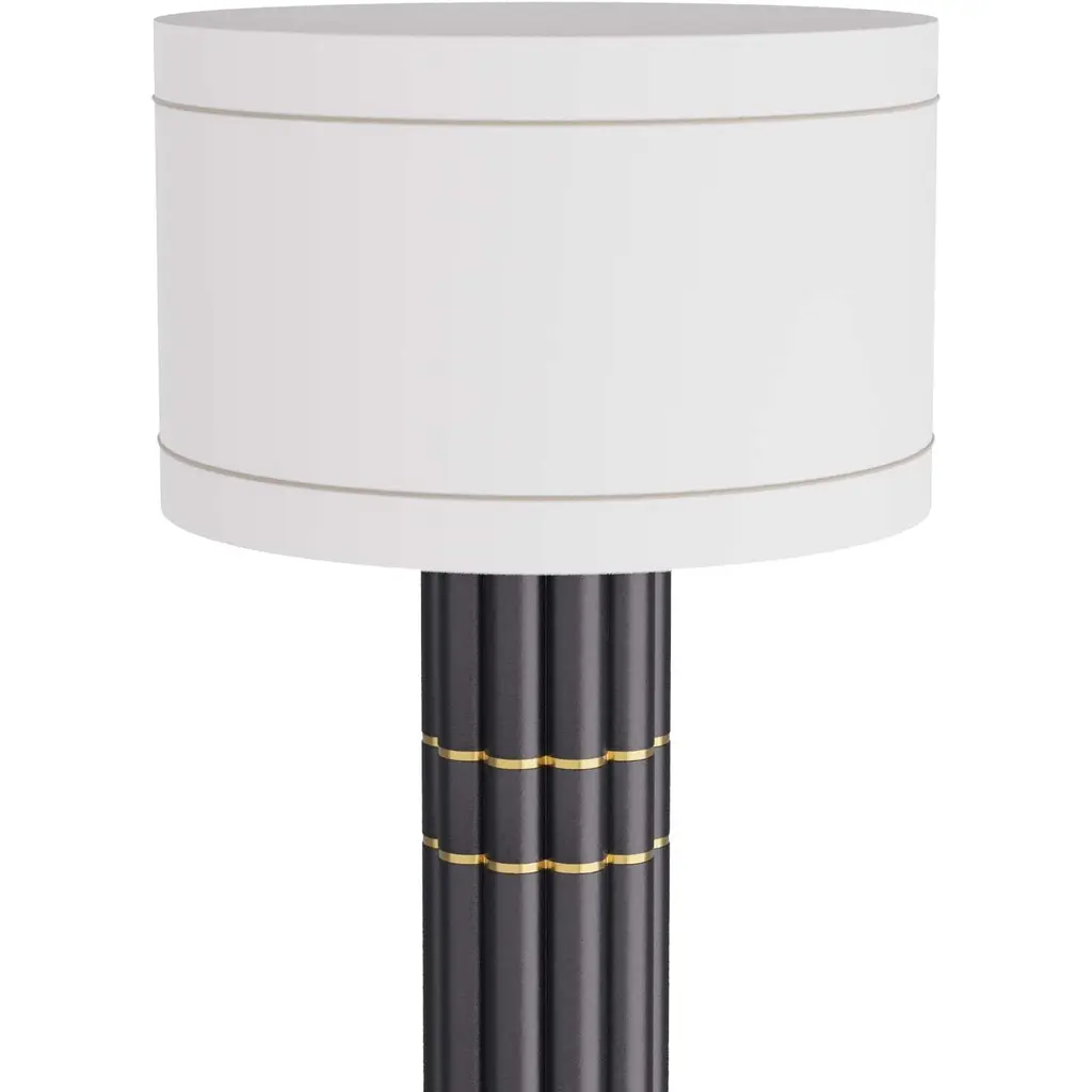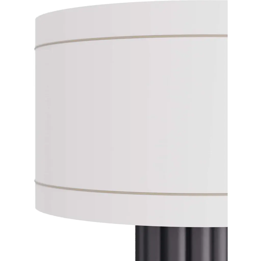 At home in modern or traditional environments alike, our warner floor lamp is crafted as in a cluster of reed shapes forming a scalloped column in black resin. Bands of high-contrast antique brass steel embellish the column, also forming the disc base. The stately lamp is detailed with an antique brass sphere finial and a tapered off-white linen shade lined in off-white cotton. Finish will vary.