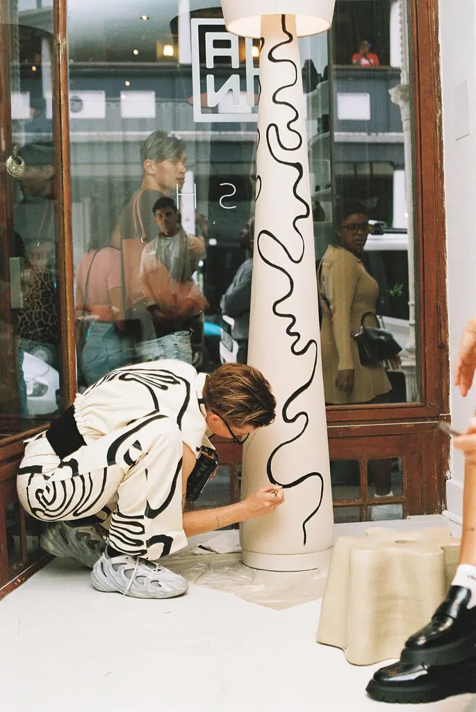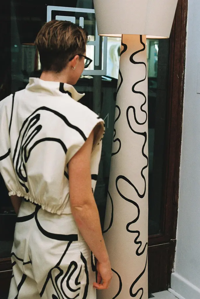 Wendy Floor Lamp by Nish StudioDimensions: ⌀ 47 x H 210 cmMaterials: FabricN I S H is a Cape Town based Fashion and Furniture design studio. N I S H creates contemporary, elegant and progressive designs that salute the contradiction between perfection and the irregularity that comes with using natural materials and human craftsmanship. Inspired by the actuality that our pieces will adapt and form an essence unique to the environment/person that takes them on.