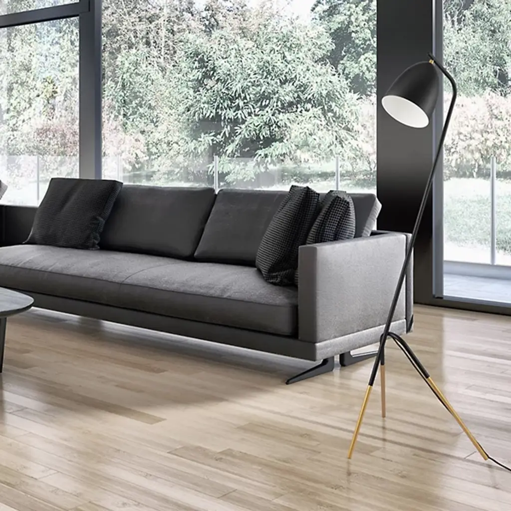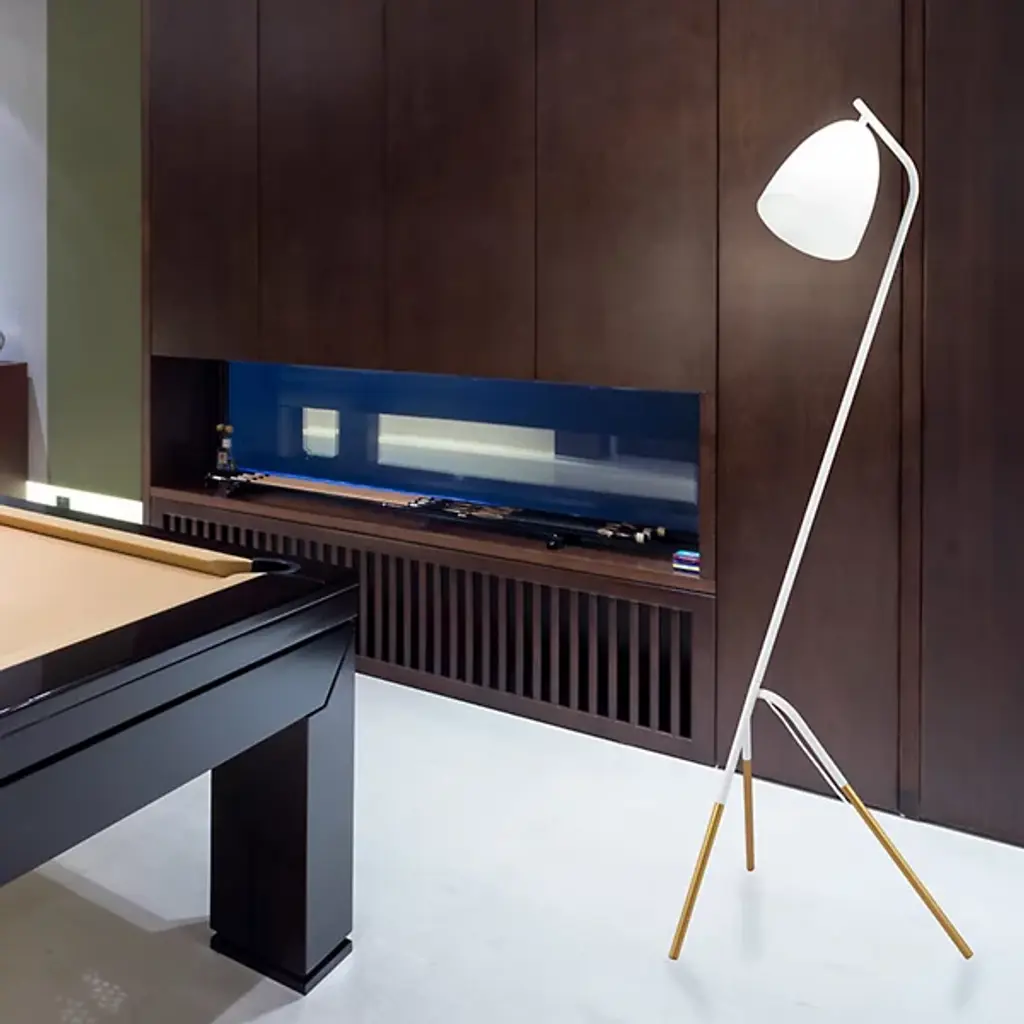 An artful and enticing fixture, the Westlinton Floor Lamp from Eglo brings a stylish touch to the décor of the home. Resting on a set of three long spindly legs, the body of this piece arcs backward before briefly gently curving into a suitable hanging spot for the white metal shade. The gold leaf feet accent beautifully with the rest of the silhouette while the lone bulb spreads a direct and bright glow downward.