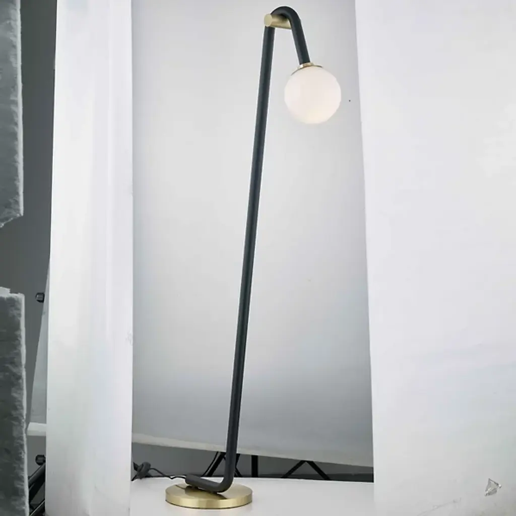 The Whit Floor Lamp from Mitzi by Hudson Valley represents the best of minimalist design made accessible for the contemporary home. It features a simple design crafted from Steel Tubing with a gentle bend and round base plate, both of which are unadorned. This frame houses a round Opal Glass globe diffuser that’s accented with an offset finish Metal dowel near its mount for a cool, modern twist. A clean look that is understated in every sense, it lends a unique personality to sofa sets, bedrooms and more. It’s especially well suited for complementing Danish modern decor in open floor plan settings.