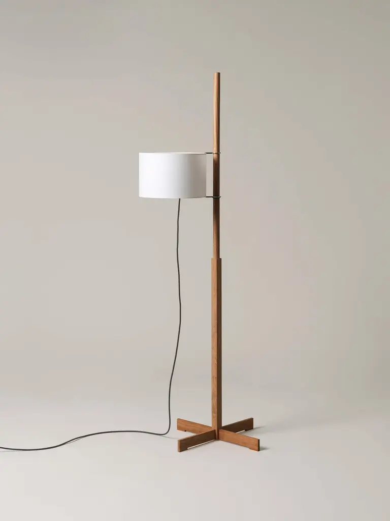 White and oak TMM floor lamp by Miguel MiláDimensions: D 50 x W 60 x H 166 cmMaterials: Cherry wood, parchment lampshade.Available in 3 lampshades: beige, white and white with diffuser.Available in 5 woods: beech, cherry, walnut, natural oak and black oak.In a flourish of formal serenity and functional efficacy, Miguel Milá cleverly separated the three basic components of any lamp: the structure, the electrical parts and the shade. The light source rotates around the shaft and can be raised or lowered like a flag on a mast.Height-adjustable lampshade. The light is switched on/off by pulling softly from the cable.Santa & Cole is a small, independent and global editor of design products, with its roots in Belloch (Barcelona, Spain). We have been editing since 1985, when the company was first founded. By editing we mean preparing a work for the public domain, we mean adapting an item for everyone’s use. What a book editor does with stories, we do with objects.More than eighty creators have contributed to a rich catalogue of furniture and lighting products originating in very different contexts, by renowned designers such as Antoni Arola, Miguel Milá, André Ricard and llmari Tapiovaara.Acute and attentive to quality and detail, Santa & Cole outsources all of its industrial production to an extensive network of suppliers, mainly in Spain, but also in other countries such as Japan, where the washi paper for our Tekiò lamp is made.Our mission is to build, safeguard and disseminate knowledge through design objects. Objects whose quality is recognisable at the touch of a hand, and that enrich people’s lives, whether at home or in shared environments. Our philosophy is more modern than futurist and we are more intrigued by silence than by stridency.Our focus is not the present market, but the future one; not Barcelona, but the world; not fashion, but history.All our lamps can be wired according to each country. If sold to the USA it will be wired for the USA for instance.