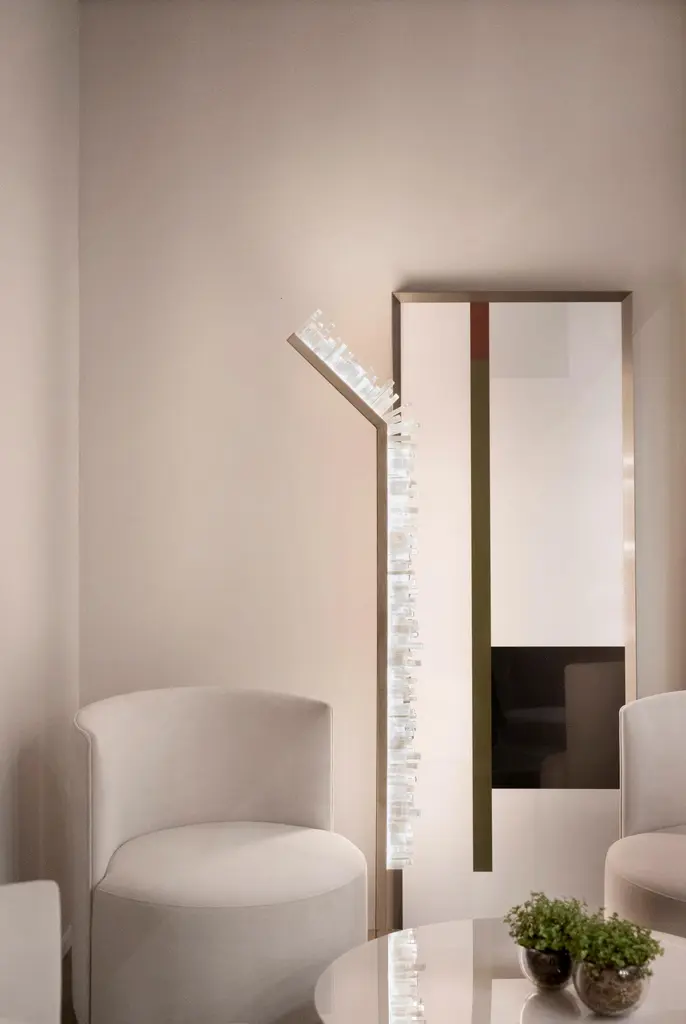 Hand-sculpted white and smoked quartz floor lamp by AverSculpted lamp with quality natural quartzMeasures: 170 x 30 x 20 cm01 X LED 7W / 450 lumens.