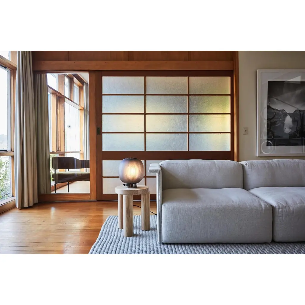 White Bloom Floor Lamp by ResidentDimensions: D 27.5 x H 133 cmMaterials: Glass, Steel.The Bloom Pendant’s super-elliptical form is inspired by the gentle dynamic flow of paper lanterns. Transparency and light create a glorious lit effect through the use of two contrasting materials – a finely perforated mesh core and frosted blown glass – which combine to project a soft focus texture onto the inside of the shade. At the same time, an unobstructed pool of light is projected downwards onto objects below. Bloom’s distinct character is evident both in its on and off state, creating a versatile pendant light.About: Founded by Simon James & Scott Bridgens in 2011, Resident is the home of enduring design pieces created for the next generation of conscious contemporary living. As the first globally-focused design house from New Zealand, Resident is a leader in the ’New World Luxury’’ movement, a wave of innovative design-led, sustainability focused brands taking on the world from a Southern Hemisphere base.All our lamps can be wired according to each country. If sold to the USA it will be wired for the USA for instance.