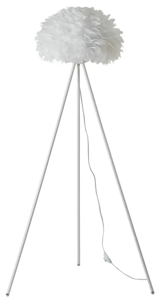 White Iron Floor Lamp With White Feather Ball