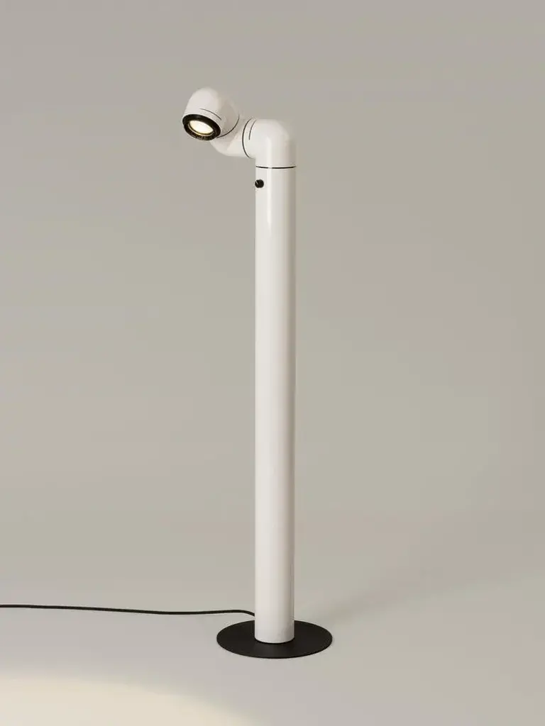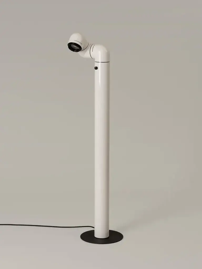 White tatu floor lamp by andré ricard dimensions: d 23 x w 26 x h 116 cm materials: metal, plastic. Available in red or white. This friendly lamp, a revolutionary milestone in design, is essential in any context, directing light wherever it is needed. A synonym to good design, modernity and comfort. Gyratory structure. Adjustable focal length from 30o to 50o. Adjustable light intensity 0% to 100%. Dimmer and switch incorporated into the luminaire. Built-in led 6w. this piece is attributed to the mentioned designer/maker. It has no attribution mark and no official proof of authenticity, however it is well documented in design history. I take full responsibility for any authenticity issues arising from misattribution, up to 250v (europe/uk standard).