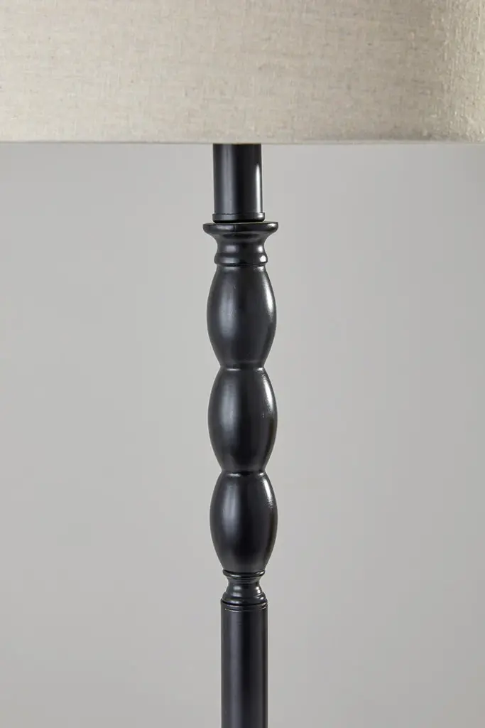 When your ensemble is in need of a little illumination, the William Floor Lamp is the perfect choice. Founded atop a circular base, the metal frame features turned accent up top and boasts a neutral black finish for a look that complements nearly any color palette. The included fabric shade helps creates an ambient atmosphere and accommodates one 150 W E26 lightbulb (not included).- This Product is UL/ETL Listed