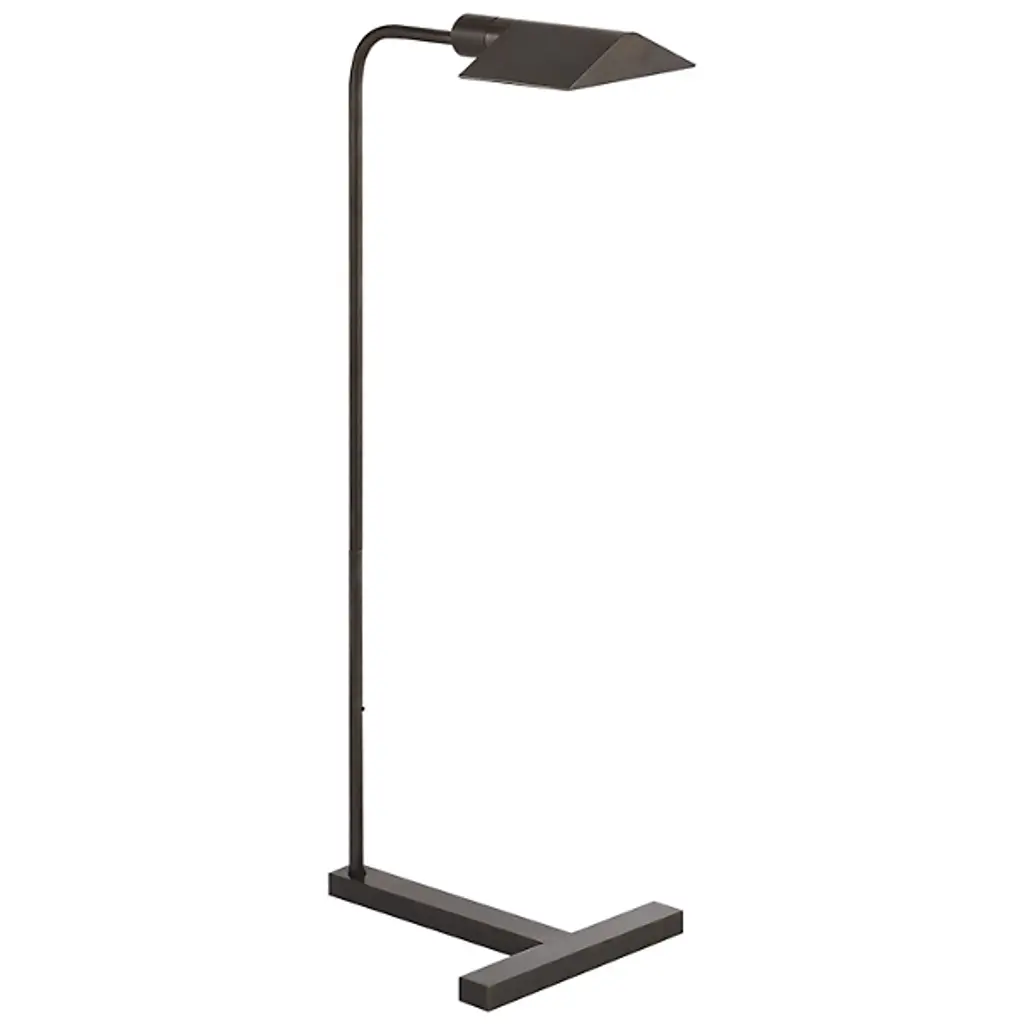 A geometric take on a classic design, the William Pharmacy Floor Lamp is an architectural beauty. The metallic finish adds a little shine and gives the simple form a little pop. The lamp's base is crafted to slide under desks, tables, or chairs to better light areas intended for reading or working.