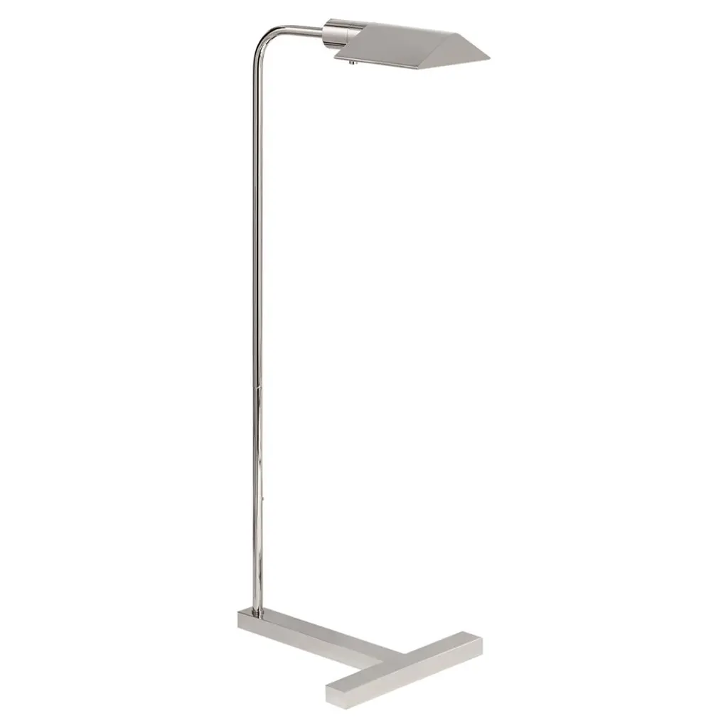 A geometric take on a classic design, the William Pharmacy Floor Lamp is an architectural beauty. The metallic finish adds a little shine and gives the simple form a little pop. The lamp's base is crafted to slide under desks, tables, or chairs to better light areas intended for reading or working.