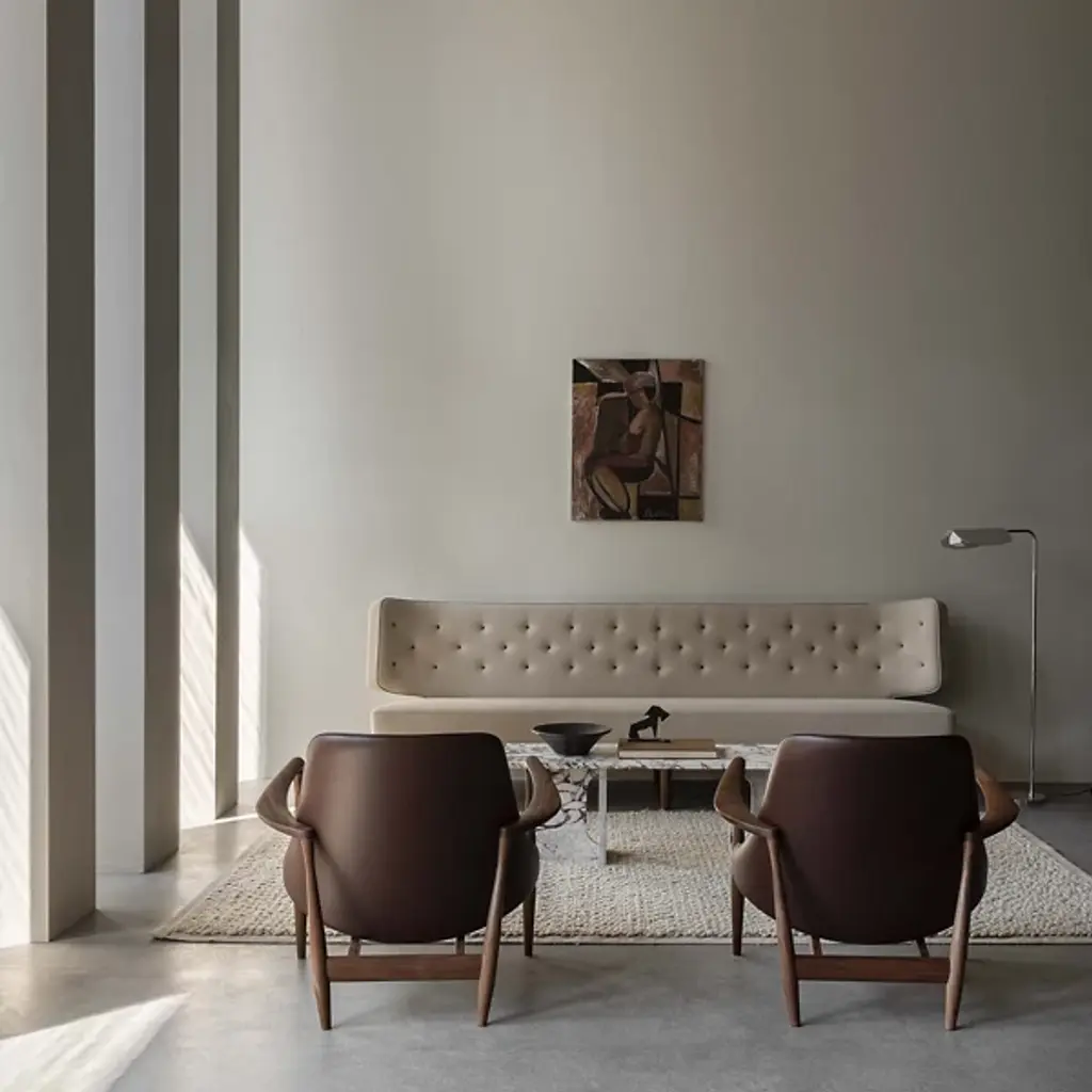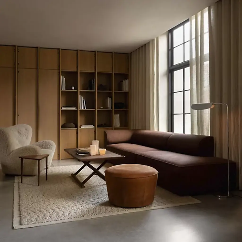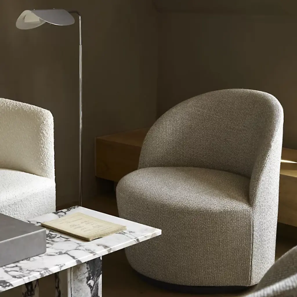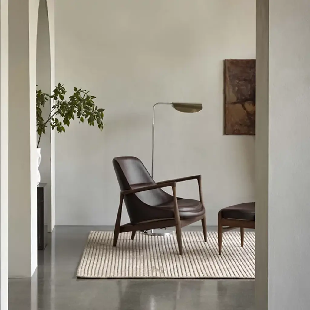 Graceful like a bird in flight. The Wing Floor Lamp from Audo Copenhagen, formerly known as Menu, flows before one’s eyes with evocative curves, dispersing a smooth, tailored light. Award-winning designer Kenneth Bergenblad’s Scandinavian aesthetic is informed by balancing shapes, colors, and materials with timelessness in mind. Resting on a low-profile base, this steel piece stands with a slender architectural column that slots in tight areas. The aluminum shade’s folded curves evoke fluttering wings as they conceal the lamping for minimal glare. This artful shade rotates for an ideal flow of light. The light reaches one’s eyes as a soft cast glow.