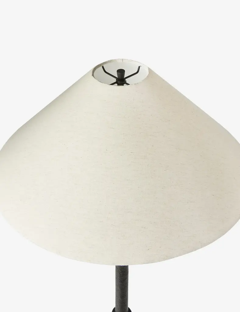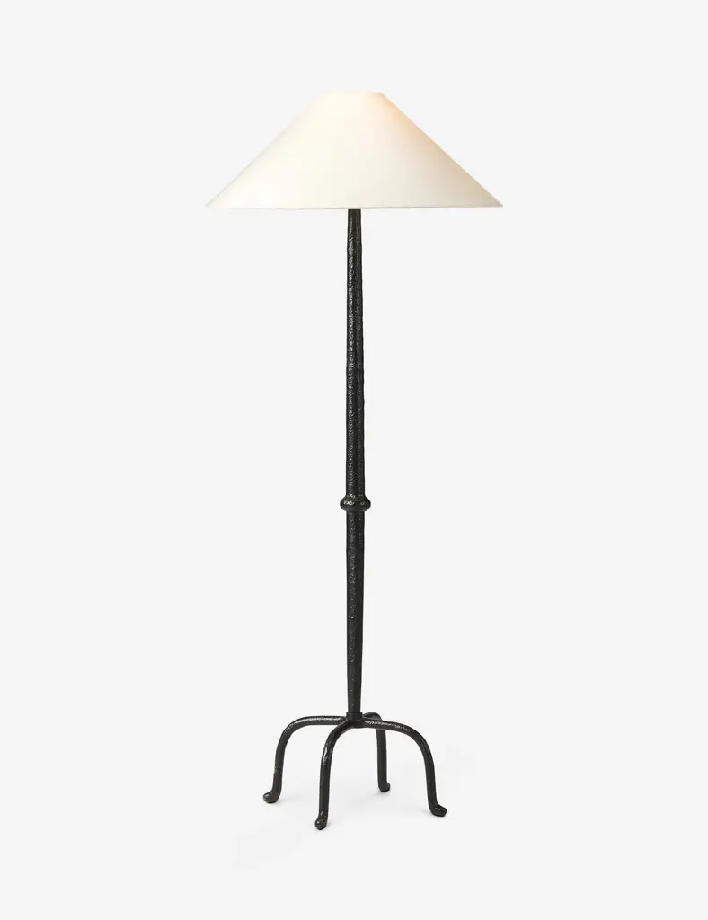 The Winry lamp styles modern lighting with a timeless air. The floor lamp's candlestick design is fashioned from cast aluminum on four legs that set off its classic silhouette. A tapered linen shade completes the look with a transitional touch.