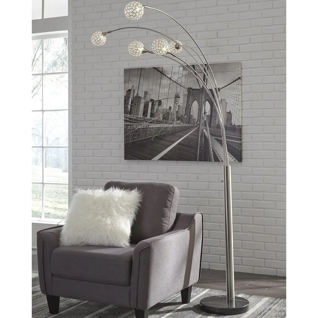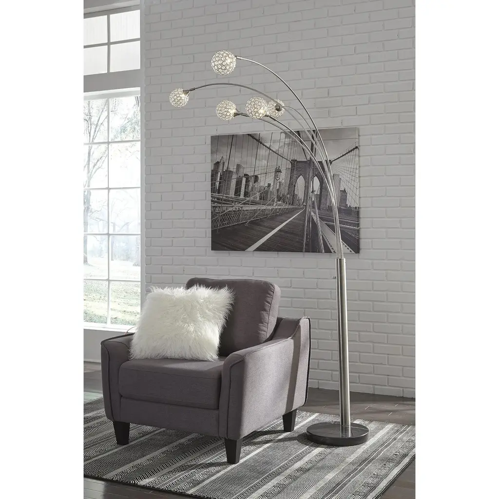 Have a ball bringing highly contemporary style to a space with this 5-light floor lamp. Crystal-like acrylic balls spread light in such an illuminating way. Chrome-tone metal and black marble richly enhance the designer aesthetic.