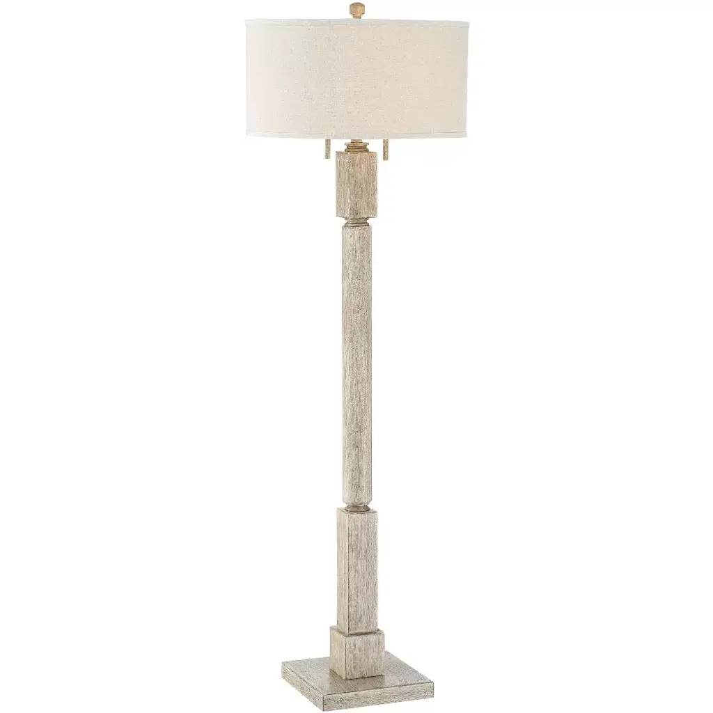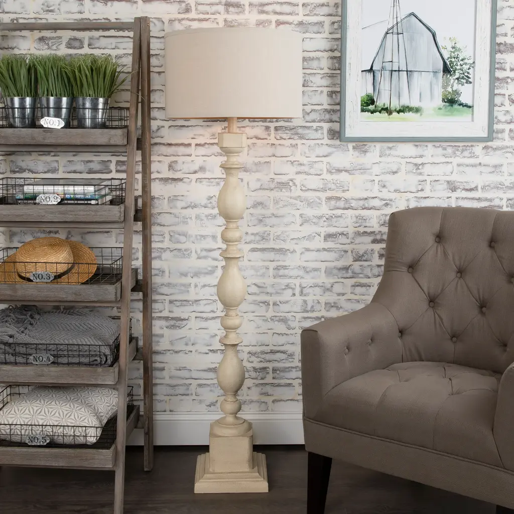 Understated design meets antiqued appeal with the charming 66" H floor lamp – it's a must-have for your home! Made from resin, it showcases a blocky base and elegantly turned body for a sophisticated touch.