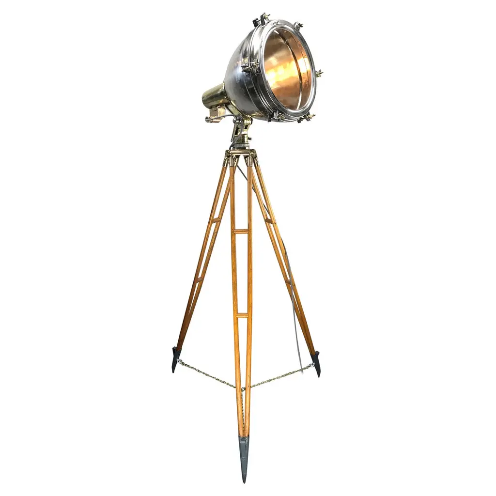 Wood Tripod Leg Floor Lamp With Chrome Hardware