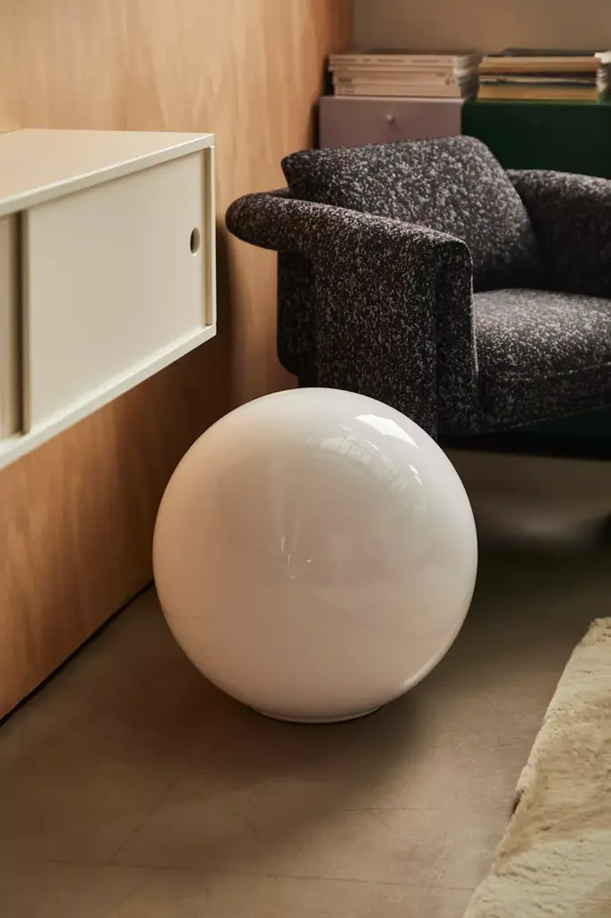 Add a modern feel to your space with this globe floor lamp featuring an oversized frosted shade that creates a unique lighting display. Available exclusively at Urban Outfitters. **Features** \- Modern floor lamp from UO Home \- Unique lighting to illuminate your space \- Plug in \- Requires one E26 Type A 60W LED Bulb - not included \- Versatile - doubles as a globe table lamp \- Compact fluorescent compatible \- UO exclusive **Content + Care** \- 90% Acrylic, 10% other \- Wipe clean \- Imported \- Made in compliance with US electrical standards. To use this item outside of the US, pair with an outlet adapter and voltage converter made specifically for use in your location. **Size** Small \- Wattage/Voltage: 60W/120V \- Overall dimensions: 15.4"dia x 15.4"h \- Base dimensions: 6.7"dia x 0.2"h \- Shade dimensions: 15.6"dia x 15.2"h \- Cord length: 7 ft \- Weight: 4.4 lbs \- Shipping package dimensions: 18.9"l x 18.9"w x 18.5"h \- Shipping package weight: 11.2 lbs Large \- Wattage/Voltage: 60W/120V \- Overall dimensions: 19.5"dia x 19.3"h \- Base dimensions: 8.6"dia x 0.2"h \- Shade dimensions: 19.9"dia x 19.1"h \- Cord length: 12 ft \- Weight: 7.3 lbs \- Shipping package dimensions: 21.5"l x 21.5"w x 21.7"h \- Shipping package weight: 16.9 lbs