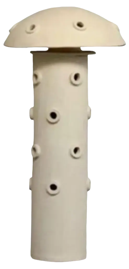 XL standing lamp by Olivia CognetMaterials: Ceramic.Dimensions: D 58 x W 42 x H 70 cmSince moving to Los Angeles in 2016, French artist and designer Olivia Cognet has focused on ceramics as the fertile medium through which she expresses her boundless creativity.With the freedom this material affords to explore every type of shape and size, she creates monumental bas-reliefs and giant totems as well as chairs, tables, lamps and vases.These unique pieces, handmade by the artist in her studio, all share the same high aesthetic, abstract and graphic standards. She draws inspiration from the lights and shadows of the landscapes of California, its modernist architecture and intense nature.Infusing a modern take on the great tradition of decorative arts, her works are both functional and powerfully evocative.Olivia Cognet grew up in Nice on the Côte d’Azur, studied at the Villa Arson and was nourished by the brilliant masters from the school of Vallauris, from Picasso to Roger Capron; for her, ceramics are a key element of architecture.She starts by exploring ideas on paper, before moving to stoneware, using a local clay that comes in three natural shades. Her designs showcase the power of contrasts; her minimal, geometric lines are interwoven with a sensual and organic vocabulary.The austere aesthetic of rough clay is heightened by the elegance of the crackle glazes, which generate singular effects.Elsewhere, ethereal excrescences defy the laws of gravity.Day after day, guided by her intuition, Olivia Cognet reinvents the poetic experience of creation, fashioning work through the purity of the material. This is the magic of the artisan, combined with the promise of vibrant beauty, to enhance everyday life.Marion Vignal.All our lamps can be wired according to each country. If sold to the USA it will be wired for the USA for instance.