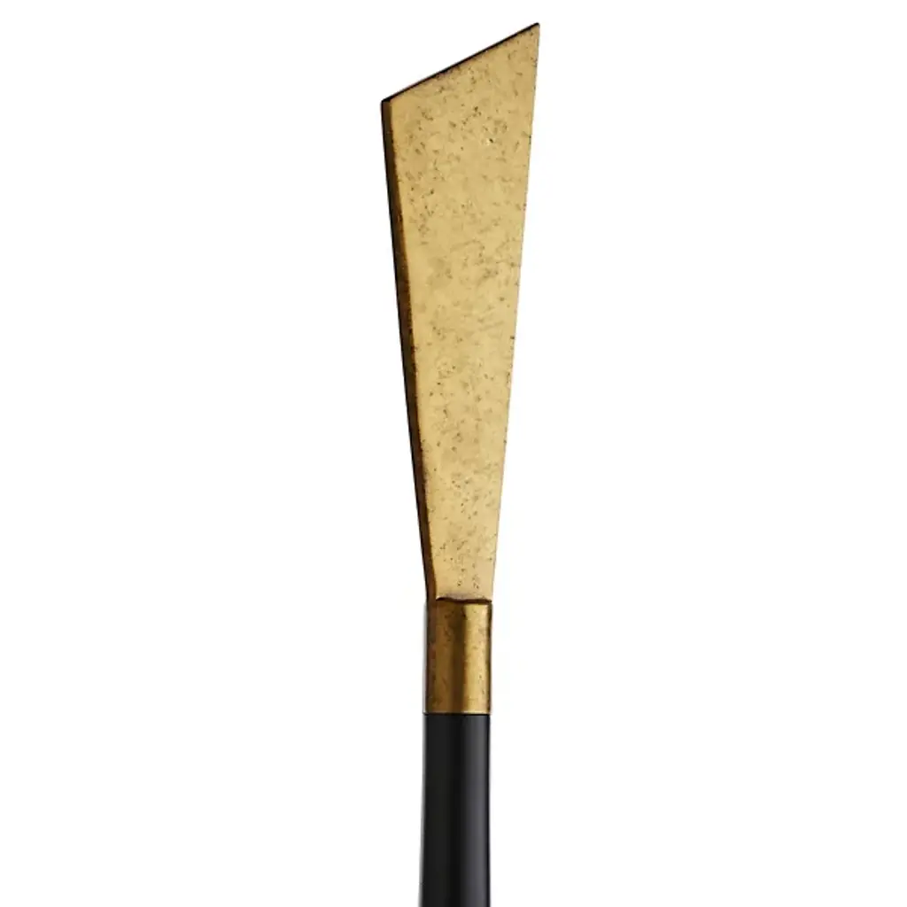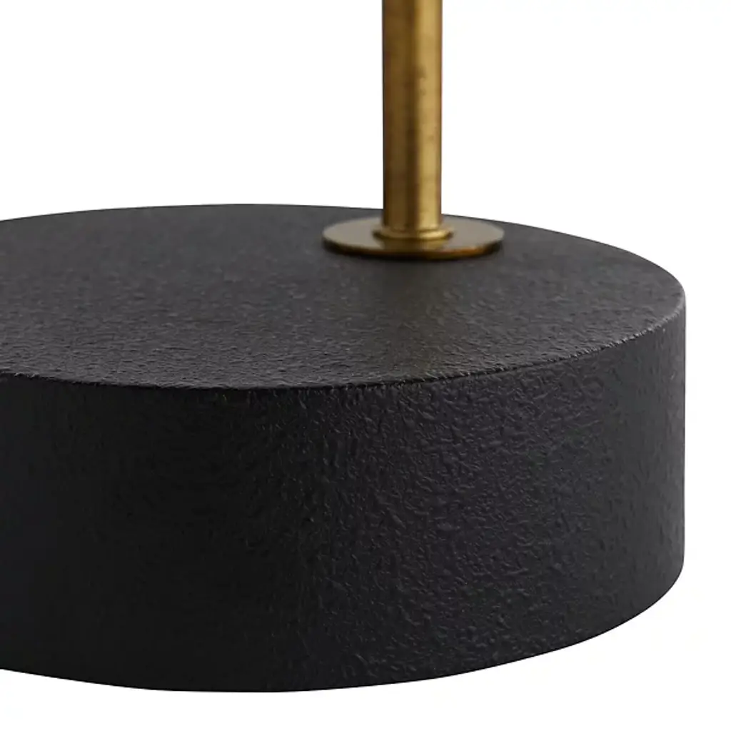 The Yasmin Floor Lamp from Arteriors prioritizes precise functionality through its thoughtfully engineered design. The tapered iron rod creates a minimal vertical profile that integrates seamlessly into contemporary spaces while remaining unobtrusive. Its distinctive blade-shaped finial in vintage brass adds unexpected contrast against the primarily dark framework. The cylindrical double shade construction allows for directional illumination, making this lamp exceptionally practical for reading nooks or work areas. The full-range dimmer controls light output, from gentle ambient glow to focused task lighting.