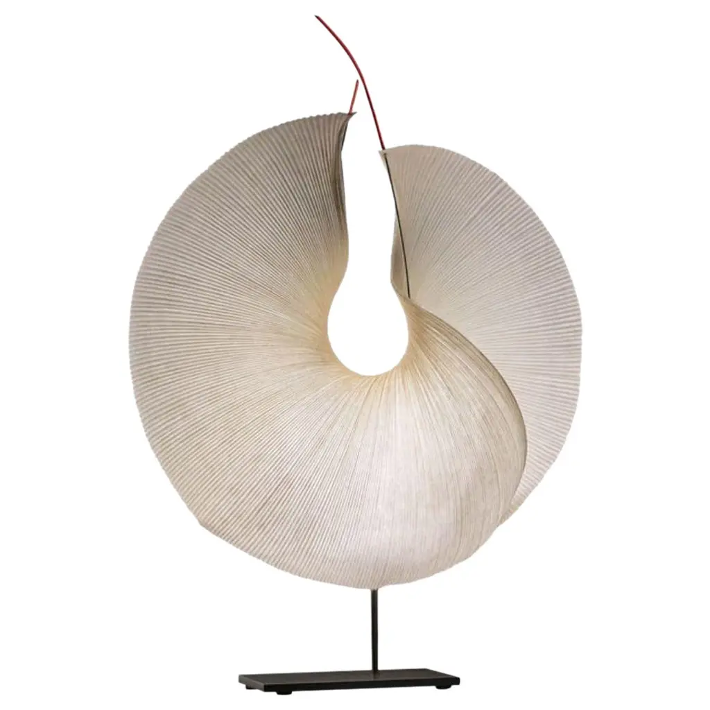 'Yoruba Rose' Japanese Washi paper & stainless steel floor lamp for Ingo MaurerDesigned by Dagmar Mombach and produced by Ingo Maurer, one of the most celebrated German lighting icons since 1966. With imagination, creativity and technical prowess, Maurer’s lamps have been explicitly designed to “stimulate the imagination and excite the emotions.” Today his Munich workshop continues to craft incomparable creations true to the one of a kind spirit of the firm’s founder.‘Yoruba Rose’ is the artistic and graceful fusion of paper, metal, stainless steel, and silicone. Fabricated in Japanese paper, it has to undergo a meticulous manufacturing process in Dagmar Mombach’s studio, until the desired shape is achieved. The shade is attached to red-enameled stainless steel wires with the resulting object eliciting a harmonious and calming expression.Price per item. Available to order in unlimited quantities. Also available as a table lamp, please see our separate listing. This listing is for the 'Yoruba Rose' floor lamp in Washi paper and stainless steel.In stock lead time 1-2 weeks. Out of stock can add 8 weeks or more. Please note that inventory availability can change without notice. For time sensitive orders please contact us for current lead times prior to purchasing. Illuminated via integrated dimmable LED providing 9 watts, with a maximum of 970 lumens and 2700k color with a CRI >90. Height adjustable between 51 - 63 inches. Powered by cable with integrated switch. Not UL listed, but recommended UL listing possible from an authorized 3rd party vendor for an additional fee. Contact us to facilitate.Made to order. All sales are final.