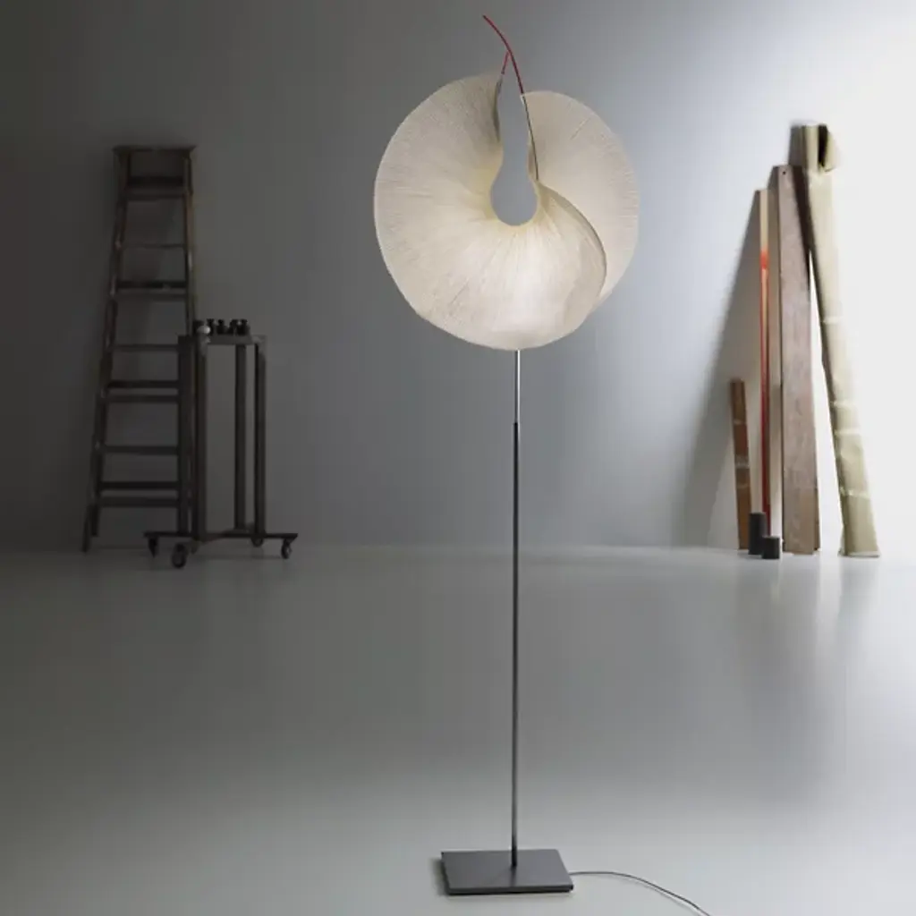 The Yoruba Rose LED Floor Lamp from Ingo Maurer is defined by its curved form and intricately crafted paper shade. Yoruba boasts a durable steel framework and is effortlessly balanced by a sturdy baseplate on your floor. This floor lamp’s ultra-slender body accentuates its avant-garde aesthetic. Illuminated by an integrated LED, your floor lamp brings brilliance to your environment and makes a bold design statement in a variety of settings.