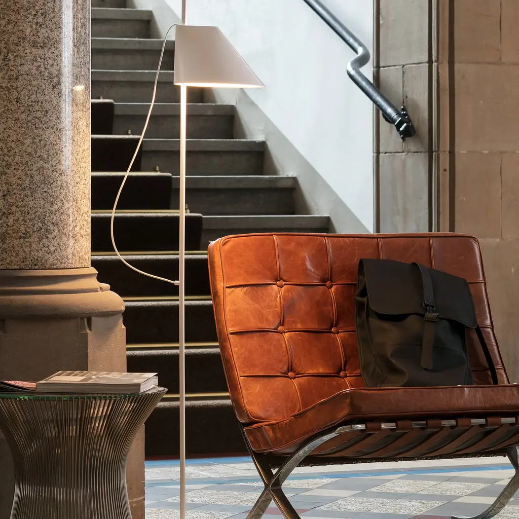 Designed by the Danish-Italian duo GamFratesi, the Yuh Floor Lamp embodies minimalism and can rotate, rise, and lower to provide illumination exactly where it's needed. Its built-in LED technology ensures high-quality, glare-free light with dimming capabilities, and features a timer that can automatically turn the light off after 4 or 8 hours.