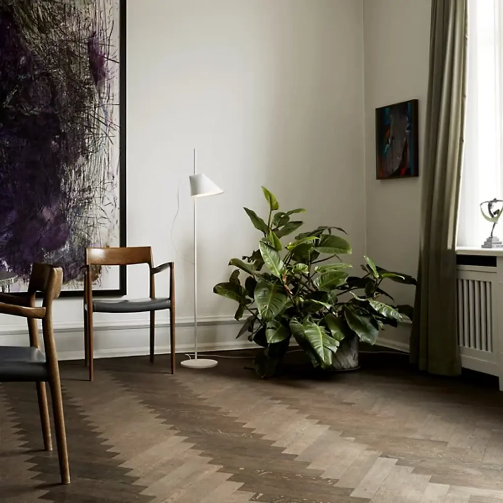 The Yuh LED Floor Lamp from Louis Poulsen offers an astounding and elegant modern design well-suited to refined interiors. Created with purpose by the renowned design duo GamFratesi, who were inspired in turn by European lighting principles. Perfect for any office space or living area, the light can be positioned in ideal locations and orientations, adding both focused task lighting and a touch of uplight. The luxurious materials playfully contrast with the lamp’s direct design, while its name is the phonetic utterance of the word “You” for a final, personal touch.