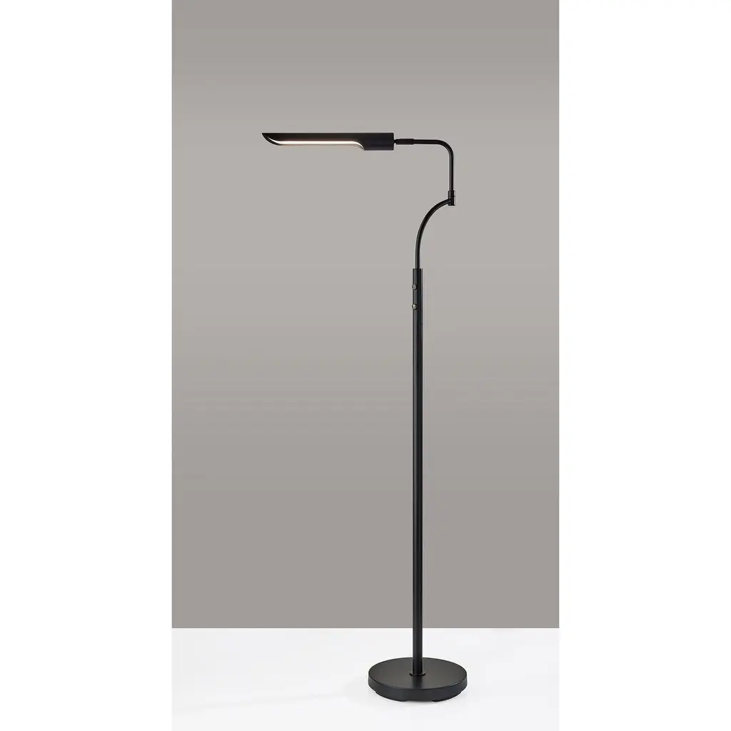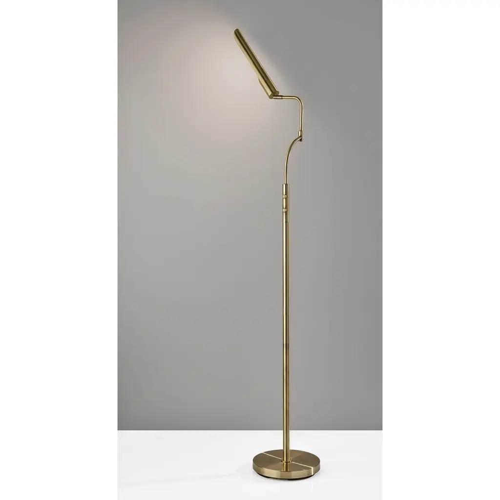 Introducing the Zane LED Floor Lamp, a sophisticated and versatile lighting solution that combines modern design with smart technology. With its sleek black or antique brass finish and contemporary aesthetic, this floor lamp adds a touch of elegance to any room. Standing at a height of 56.5 inches, the Zane Floor Lamp provides ample illumination for your space. The adjustable shade allows you to direct light precisely where you need it, while the powerful 10W LED delivers energy-efficient and glare-free lighting. The touch smart switch offers three brightness levels and three color temperature settings, enabling you to tailor your lighting to suit various activities and moods. The lamp features a black fabric-covered cord, adding to its overall sophistication and style. Elevate your home's lighting experience with the 3958-01 Zane LED Floor Lamp. Whether you're reading, relaxing, or working, this lamp offers customizable lighting options that enhance both your ambiance and productivity. Contemporary Elegance: The Zane LED Floor Lamp boasts a sleek black or antique brass finish and a contemporary design, making it a stylish addition to any room. Adjustable Shade: Enjoy the flexibility of an adjustable shade, allowing you to direct light precisely where you need it, making it ideal for reading, task lighting, or creating ambiance. Powerful LED: The lamp is equipped with a powerful 10W LED that provides bright and energy-efficient illumination, reducing eyestrain and enhancing comfort. Smart Touch Control: The touch smart switch offers three brightness levels and three color temperature settings, enabling you to create the perfect lighting conditions for various activities. Sophisticated Cord: The lamp's black fabric-covered cord not only complements its design but also adds a touch of sophistication to your space, ensuring a seamless fit with your decor.