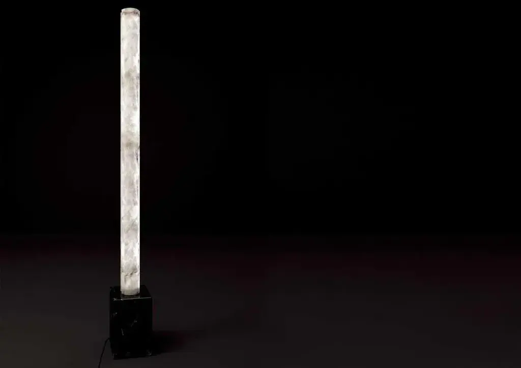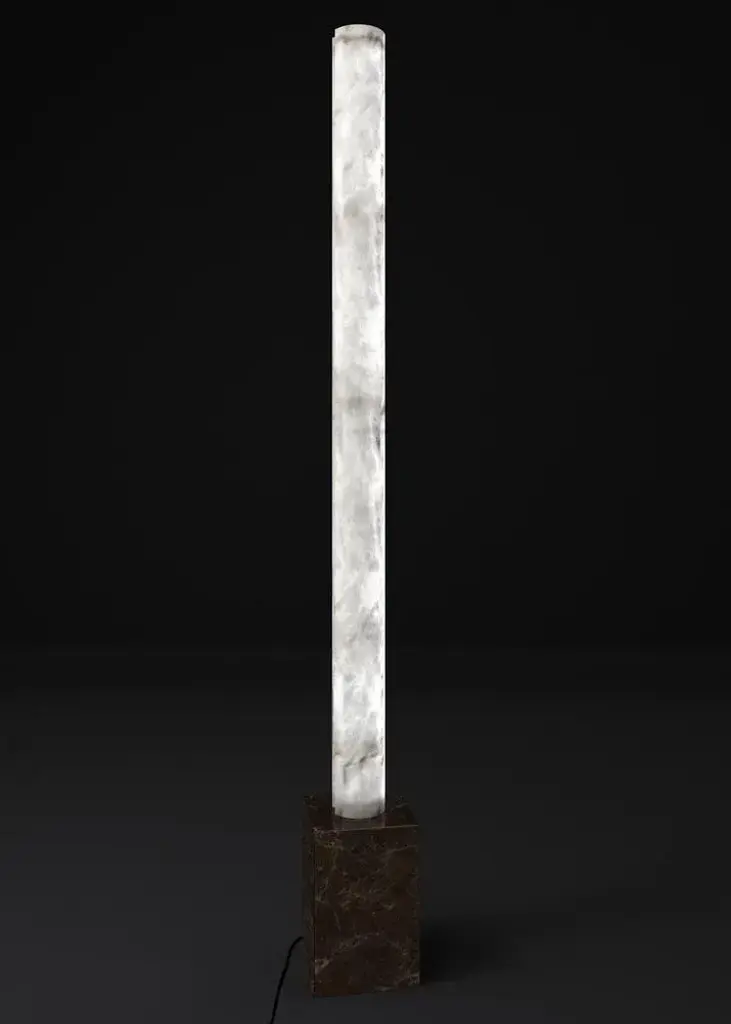 Zeus emperador marble floor lamp by alabastro italiano dimensions: d 25 x w 25 x h 185 cm. Materials: white alabaster and emperador marble. Available in different finishes: black marquinia marble, emperador marble, travertine stone and verde alpi marble. Please contact us. All our lamps can be wired according to each country. If sold to the usa it will be wired for the usa for instance. The lightning bolt, light emanating from the god zeus, which takes shape from the cut that breaks the linearity of the alabaster cylinder, inspired this series of italian alabaster. After years of experience in the family business, which specializes in design and lighting, riccardo and alberto ongarato found the brand alabastro italiano. Each project is conceived and designed to give a strong sign of recognizability and uniqueness. The use of precious materials such as alabaster, brass, leather and blown glass, worked by the skilful hands of our craftsmen, are combined to create “timeless” objects. From the depths of the earth to the light of the sun. Alabastro italiano care about these extremes and transcends them in a creative dynamic that emphasizes simplicity and clean-cut lines. The company has created an entirely new project made in italy, revolutionizing the previously existing collections into eternal and evergreen lighting elements. By designing clean-cut and original lines, built-in with the latest technology and continuously innovating, alabastro italiano has never lost sight of its goal: perfection. The result of this work is an extraordinary collection of alabaster lightings. Alabaster needs human hands to come to life. The charm of these stone objects comes from their uniqueness, from the fact that they come from the hand of those who has left a mark and a memory with their work, each grain makes each piece unique. Alabaster needs human hands to come to life. The charm of these stone objects comes from their uniqueness, from the fact that they come from the hand of those who has left a mark and a memory with their work, each grain makes each piece unique. Alabaster is a material that leaves little traces of magic all around it. It is difficult to identify the exact point where the material ends and its reflection begins. It is impossible to understand how far the light sinks in its soft transparency. It changes according to the positions in which it is placed, depending on the point of view. Alabaster is a compact and rare stone that lays down very precise laws requires a familiarity that only italian craftsmen possess. Alabastro italiano collaborates with each client to create a unique project. Starting from the advice for better architectural lighting, it brings its know-how, materials, design and creative inspiration to interior architects and interior designers. up to 250v (europe/uk standard).