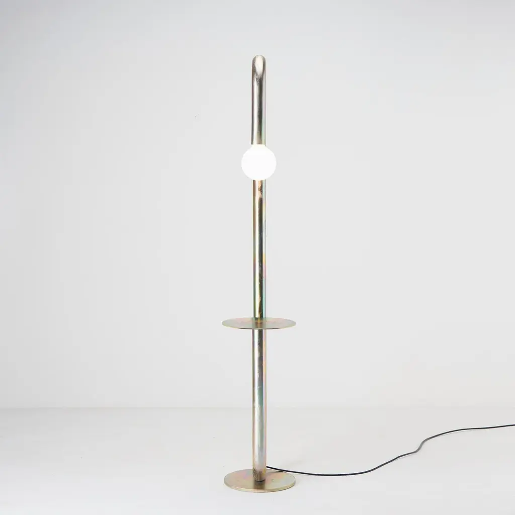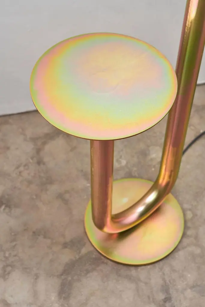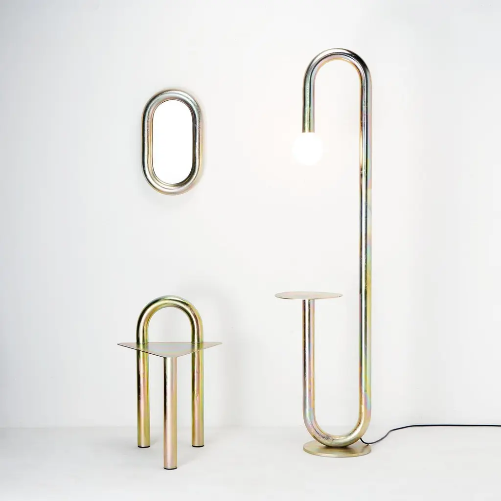 A common item in steel houses, the 180º curve is the starting point for the development of the collection. Using this element of industrial origin and organic format, we seek to create affable pieces, which transmit softness incorporated into the rawness of the material. In this version, we further reinforce its origin traces through yellow zinc plating, bringing to light this very common finish in the industry, but little appreciated outside of it.