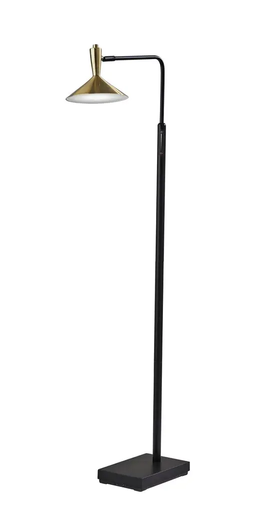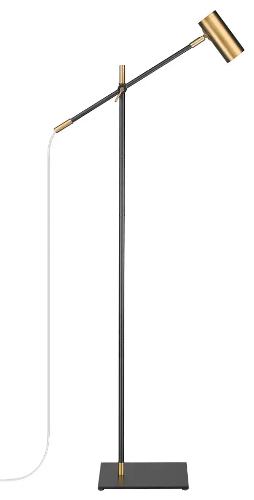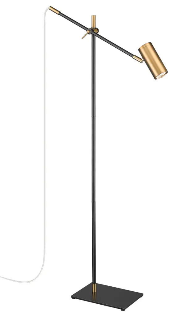 Inspired by our popular Calumet Collection of luminaries, we are proud to expand this family into task lighting with sleek desk and floor lamp versions. These ultra-convenient lamps have a style all their own. Combining contemporary style with a functional design, these portable lamps can be placed anywhere light is needed, from living areas and bedrooms to office settings. The pole and arm height are adjustable to ensure the perfect height for any setting. Uses an LED bulb (not included)This contemporary floor lamp with a cylindrical shade will brighten up your home office or living room. Serving as the ultimate task light, this fixture is constructed of steel in a matte black finish and olde brass accents for a sleek and simplistic appeal.Style : Architectural, ContemporaryBulbs Included : NoENERGY STAR : NoUL CLASSIFICATION : CUL/cETLuUL APPLICATION : DryActual Length/ext : 21.75"Frame Finish : Matte Black + Olde BrassFrame Material : SteelShade Finish/Color : Olde BrassShade Material : AluminumBulb Wattage : 35Number of Bulbs : 1Bulb Base : GU10Actual Width : 7"Actual Height : 48.25"Cord/Wire Length : 144"Actual Weight : 10 lbs
