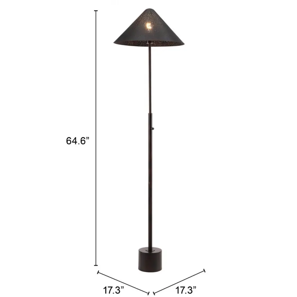 Elevate your lighting with the ZUO Modern Cardo Floor Lamp in a timeless bronze finish. Standing at 64.6 inches high with a balanced 17.3-inch width and depth, this piece seamlessly merges industrial ruggedness with modern elegance. Crafted from electroplated steel, the lamp features a dimmable E26 socket compatible with G80 bulbs (max 6W, not included) and comes equipped with an integrated rotary dimmer switch for personalized lighting. Its sculptural design makes it a perfect fit for stylish living rooms, urban lofts, or professional spaces. Key Benefits Industrial Meets Modern: Merges rugged elegance with a sleek, contemporary profile. Dimmable Illumination: Built-in rotary dimmer allows easy control over ambient lighting. Versatile Style: Works beautifully in modern living rooms, bedrooms, or creative spaces. Functional Art: Doubles as a light source and sculptural décor piece. Effortless Setup: Minimal assembly required; ready to elevate your space in minutes.
