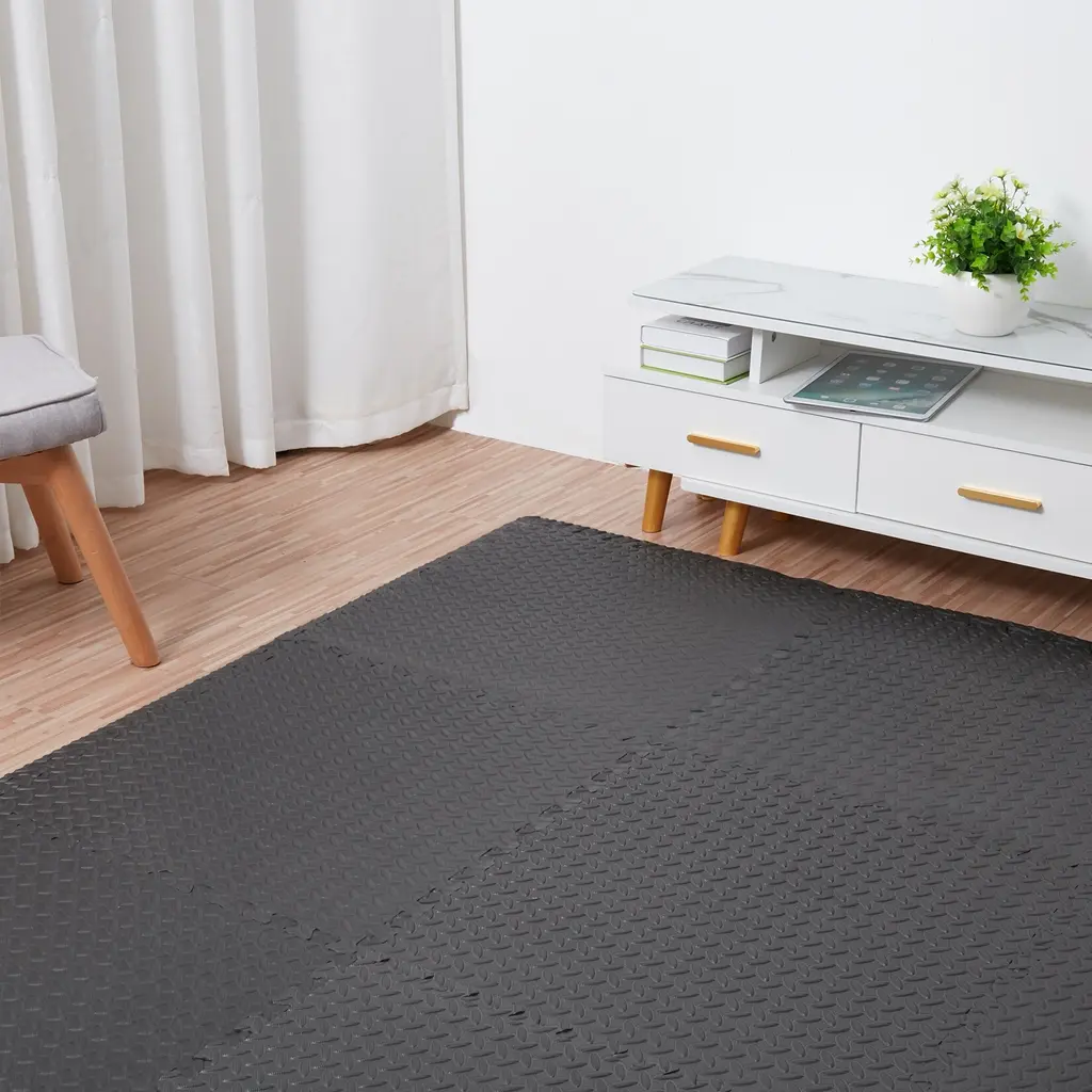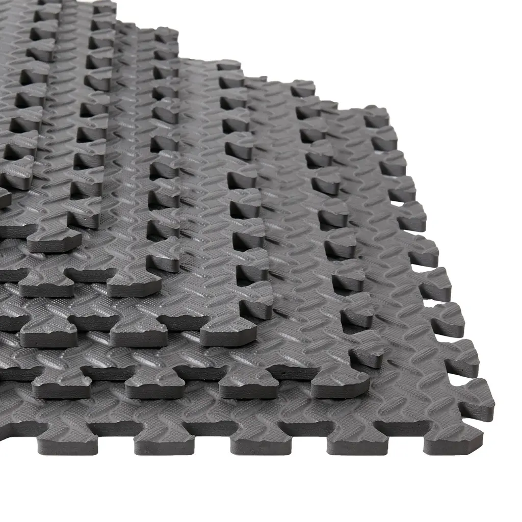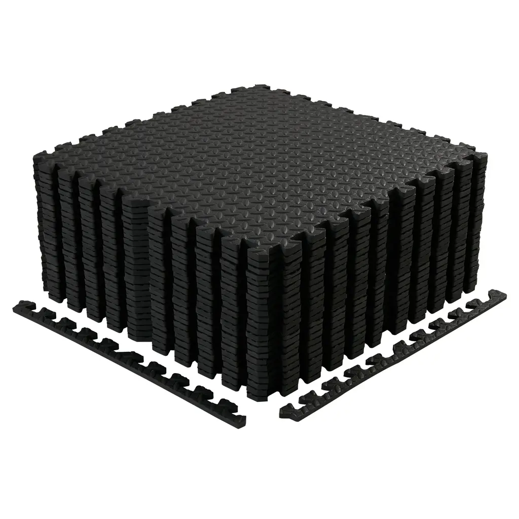 12 Tiles Gym Foam Puzzle Floor Tiles 24x24" Interlocking Floor Mats 48sq.ft - Black