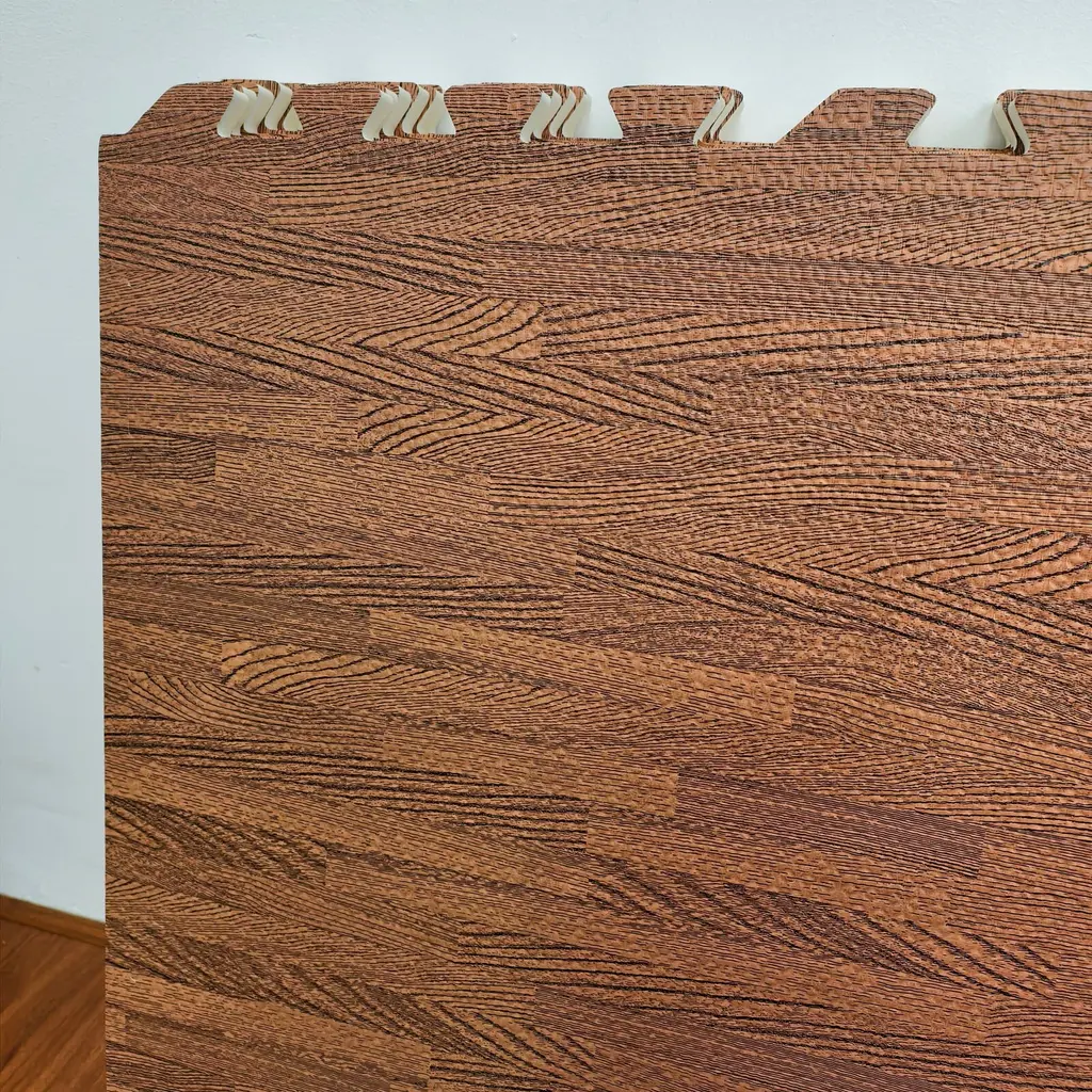 12 Tiles Interlocking Foam Floor Mats Wood Grain - Brown