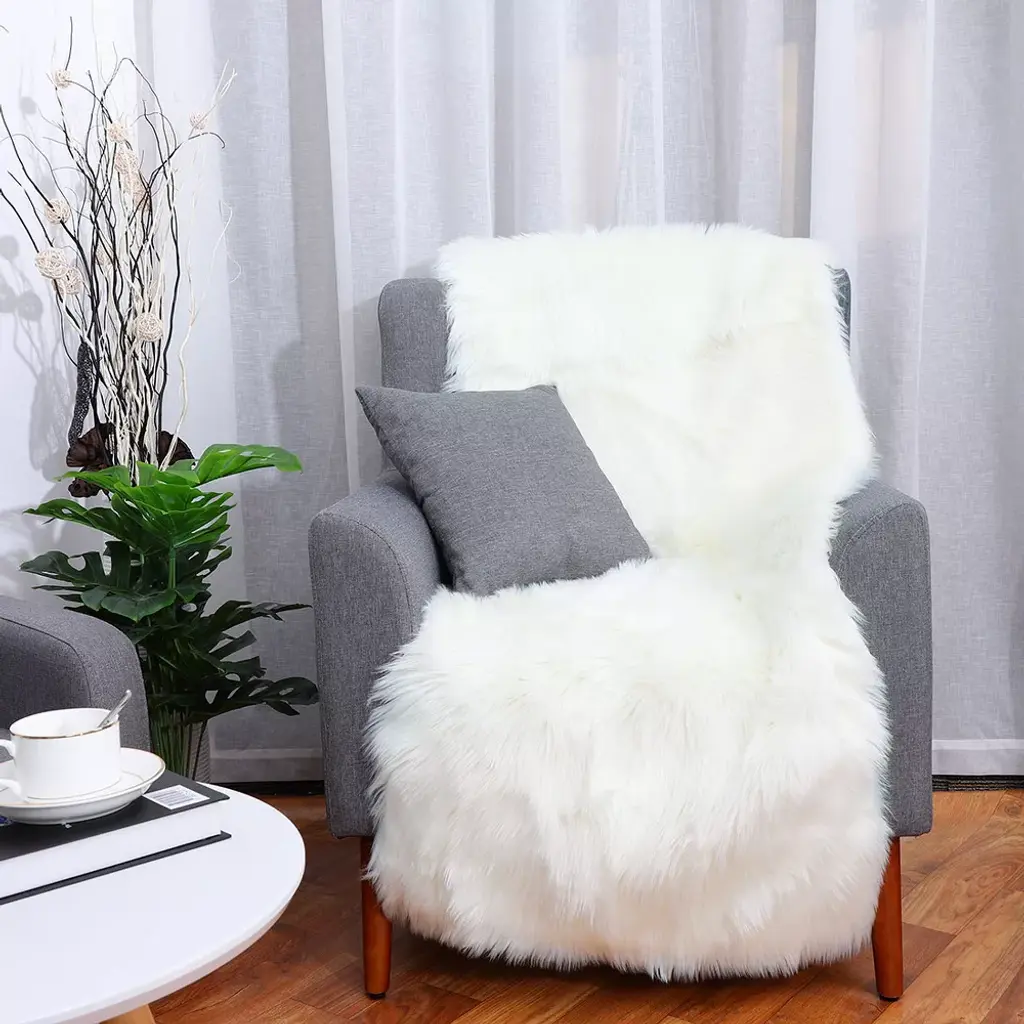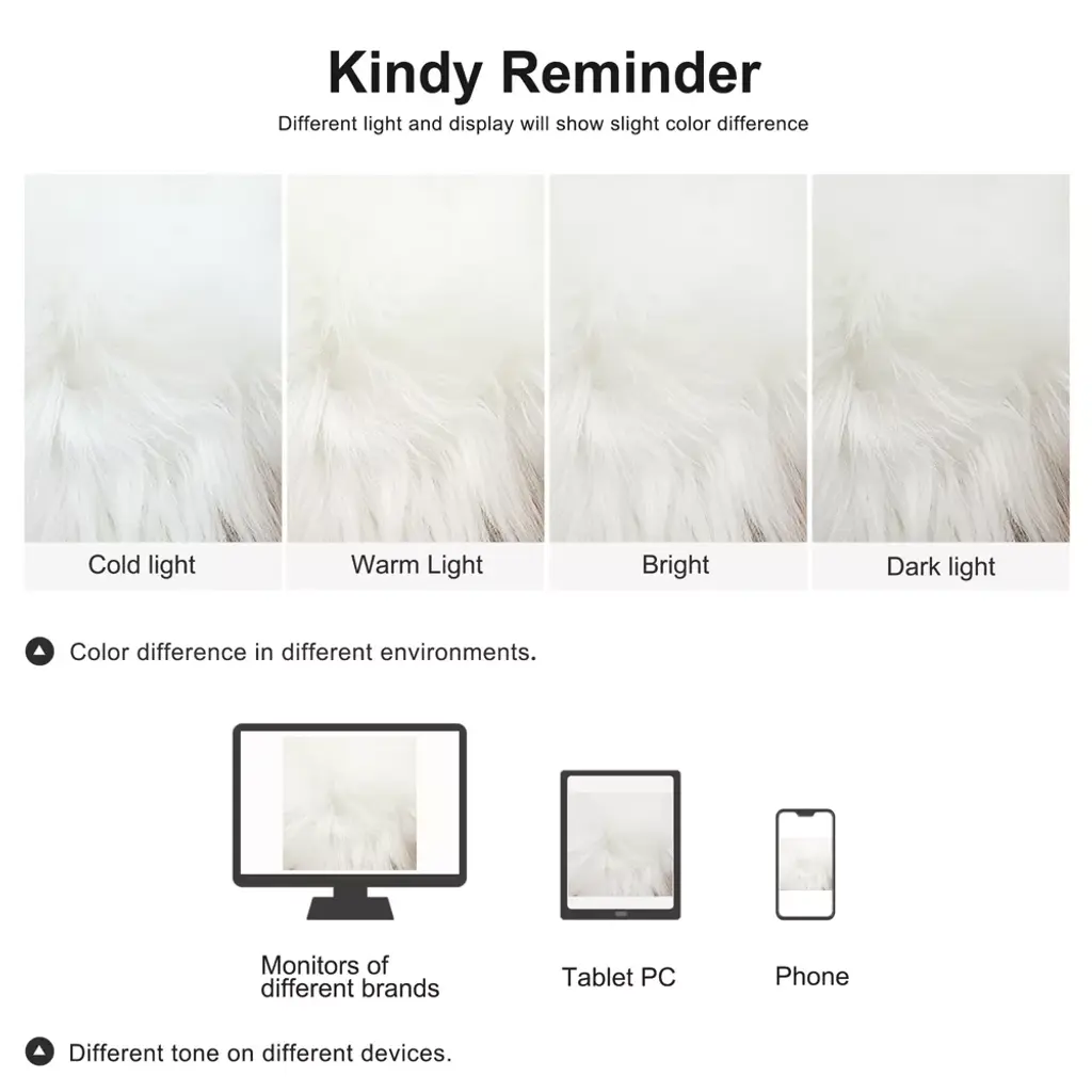 Faux Sheepskin Silky Throw Rug With Extra Long Pile enough for decorating a bedroom, living room, playroom, sturdy or sitting-room, library, family room; even variety place like store window, bay window, parlor, balcony. Material: Front side - Artificial Animal Wool. Backside - Soft Suede backing. Care instructions: spot-cleaned recommended, machine wash or hand wash with cold water. Do not bleach. Do not tumble dry. Do not iron. Do not dry clean. NOTE: It is normal for Faux Sheepskin rugs to shed fibers in the beginning, depending on care and usage.