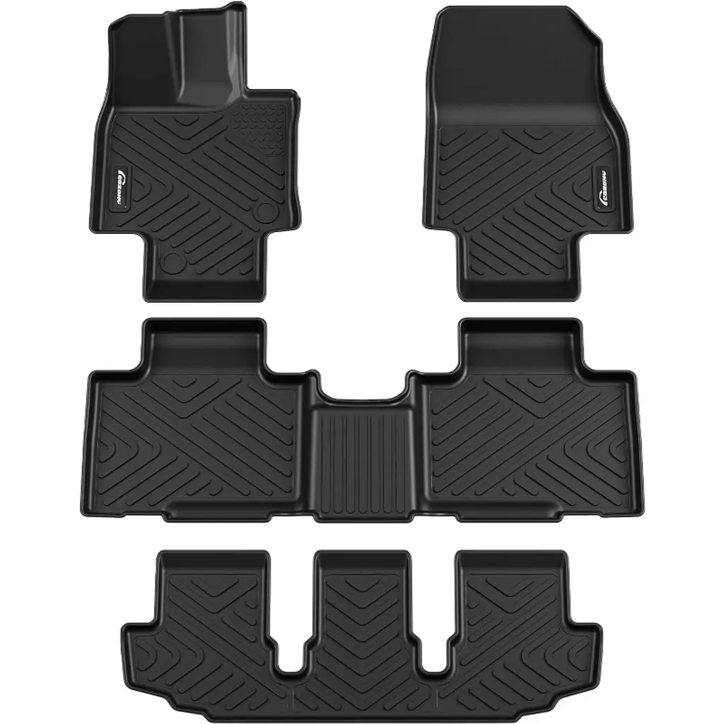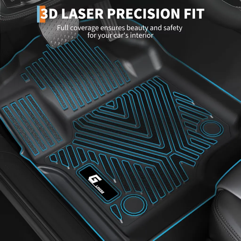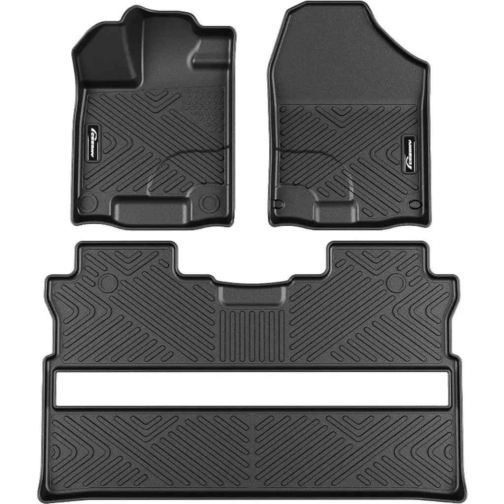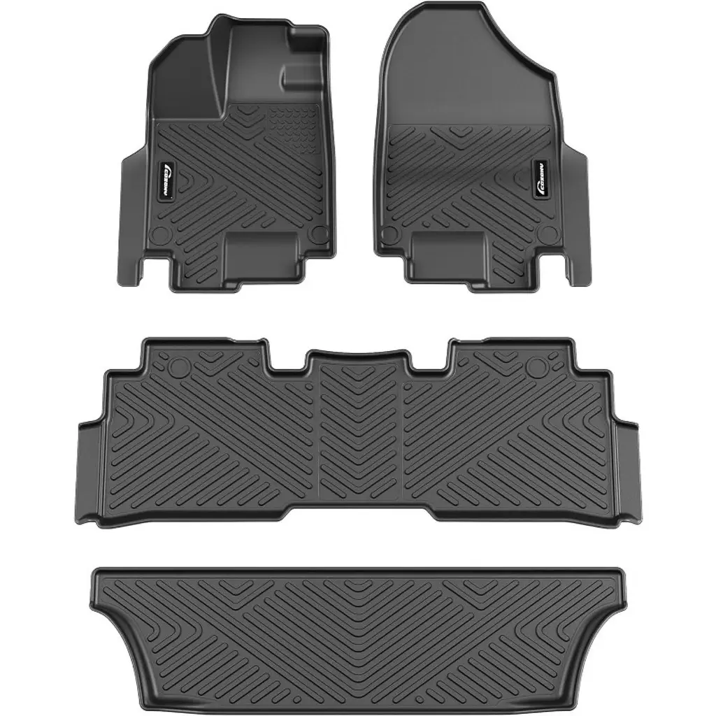 All-Weather Floor Mats TruAIR Custom Fit for 2017-2024 Ford F-250 F-350 Super Duty Crew Cab, Full Set 4 Pieces Black TPE Liners with Anti-Slip DesignKey Features:Precise Vehicle Fit: Expertly designed for 2017-2024 Ford F-250/F-350 Super Duty Crew Cab models with front bucket seats and a rear bench (4 doors). Not compatible with vinyl factory flooring.Durable TPE Material: Constructed from flexible, eco-friendly Thermoplastic Elastomer (TPE) that is free from latex, PVC, and harsh chemicals, performing reliably in extreme temperatures.Superior All-Weather Protection: Features deep grooves and high edges to effectively trap water, mud, snow, and debris, keeping your factory carpets completely clean and protected.Secure Anti-Slip Design: Equipped with a textured surface and built-in retention clips to prevent the mats from shifting or moving during driving, ensuring safety.Easy to Clean & Maintain: The non-porous surface allows for effortless cleaning; simply shake off debris or rinse with water. Resists stains and requires no vacuuming or chemical cleaners.