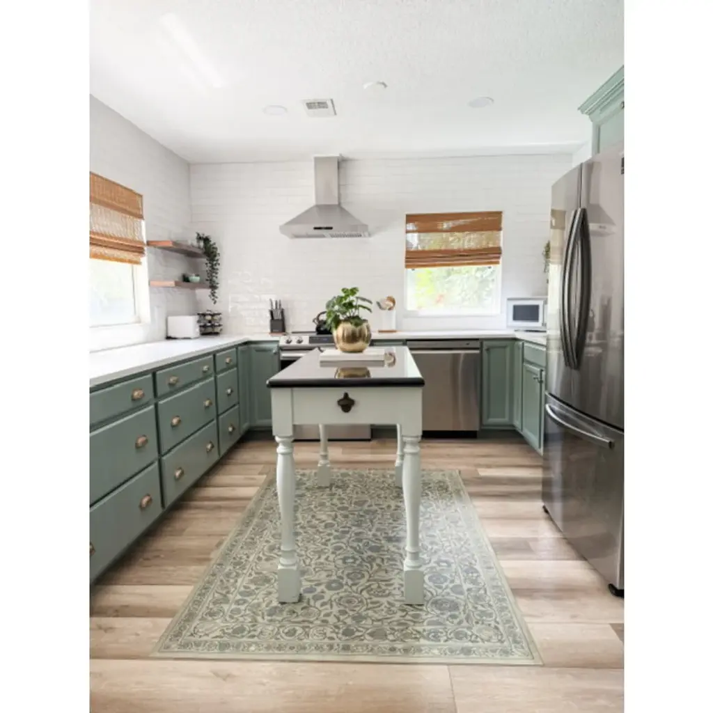 Inspired by old floor mats and vintage linoleum, these vibrant floral vinyl floor cloths offer warm colors with beautiful aged characteristic. Their worn appeal makes them great in kitchens and baths, while the smooth surface is perfect in an office where rolling chairs can glide. The cloths can be used in controlled outdoor settings such as a screened-in porch or covered lanai. These wonderful designs are printed on durable, certified non-slip, lay-flat vinyl. Due to their mastered printing process please expect some variation in hue and saturation. With a wide range of color combinations and sizes to choose from, enjoy picking your favorites to dress up your floor.