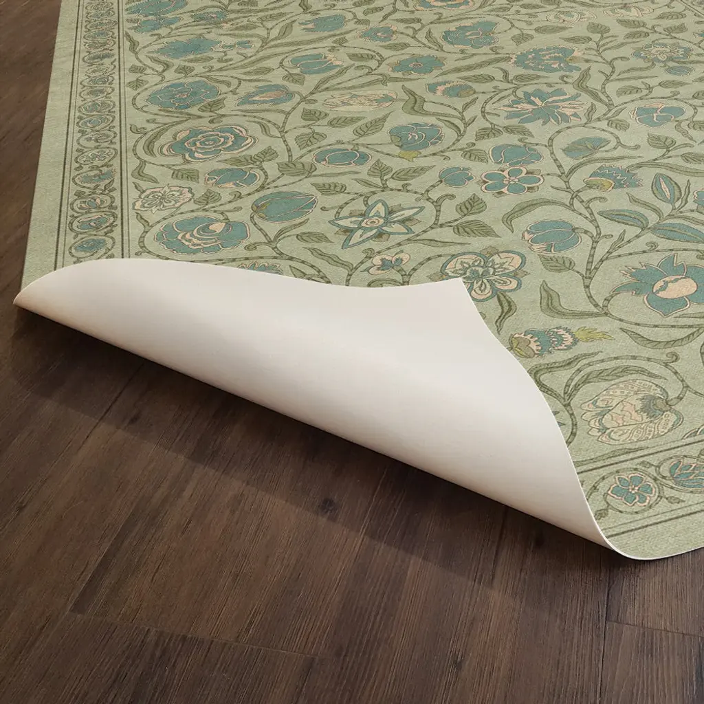 Inspired by old floor mats and vintage linoleum, these vibrant floral vinyl floor cloths offer muted colors with beautiful aged characteristic. Their worn appeal makes them great in kitchens and baths, while the smooth surface is perfect in an office where rolling chairs can glide. The cloths can be used in controlled outdoor settings such as a screened-in porch or covered lanai. These wonderful designs are printed on durable, certified non-slip, lay-flat vinyl. Due to their mastered printing process please expect some variation in hue and saturation. With a wide range of color combinations and sizes to choose from, enjoy picking your favorites to dress up your floor.