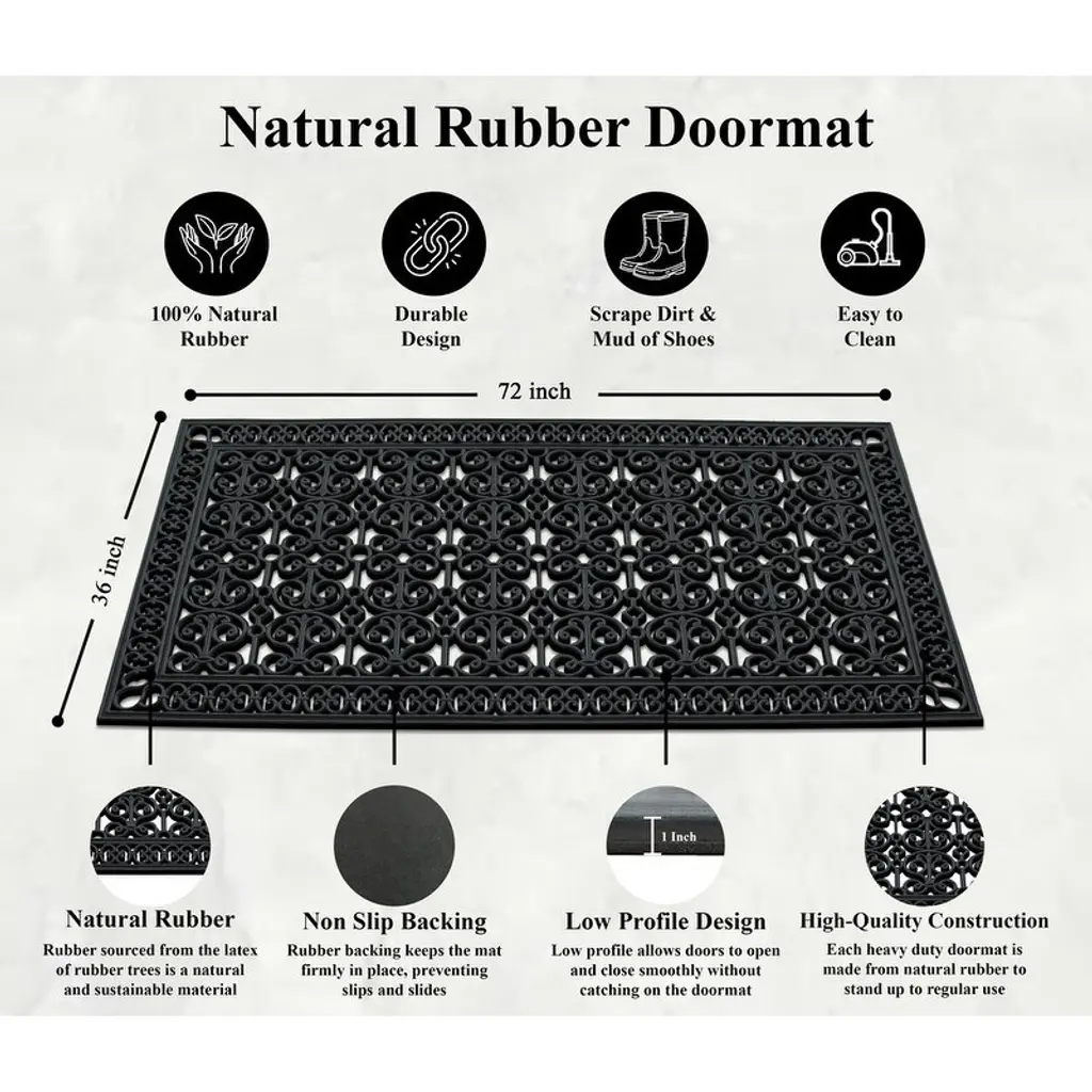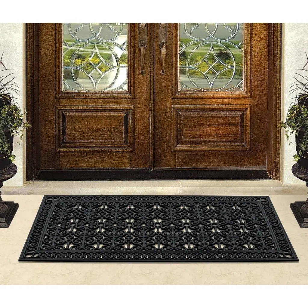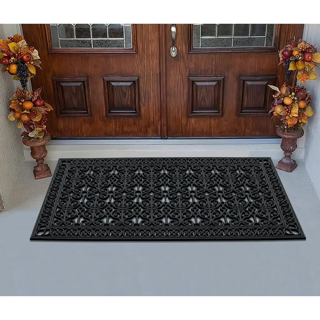 A1hc Rubber Paisley, Beautifully Non Slip Rubber Floormats Welcome Entryway Large Double Doormat, 36"x72" - Black