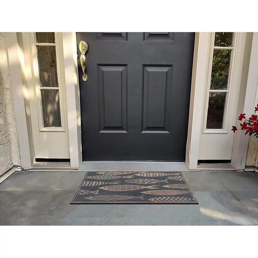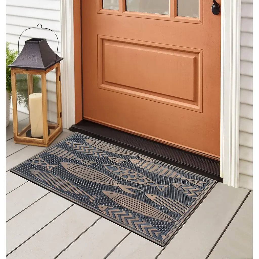 Protect your floors from tracked-in soil by placing this hand-finished fish doormat on the porch. The all-weather mat features an antibacterial surface that resists moisture, and the low-pile design lets you open and close doors easily. An anti-slip rubber backing secures the mat in place, helping your guests stay sure-footed and safe.