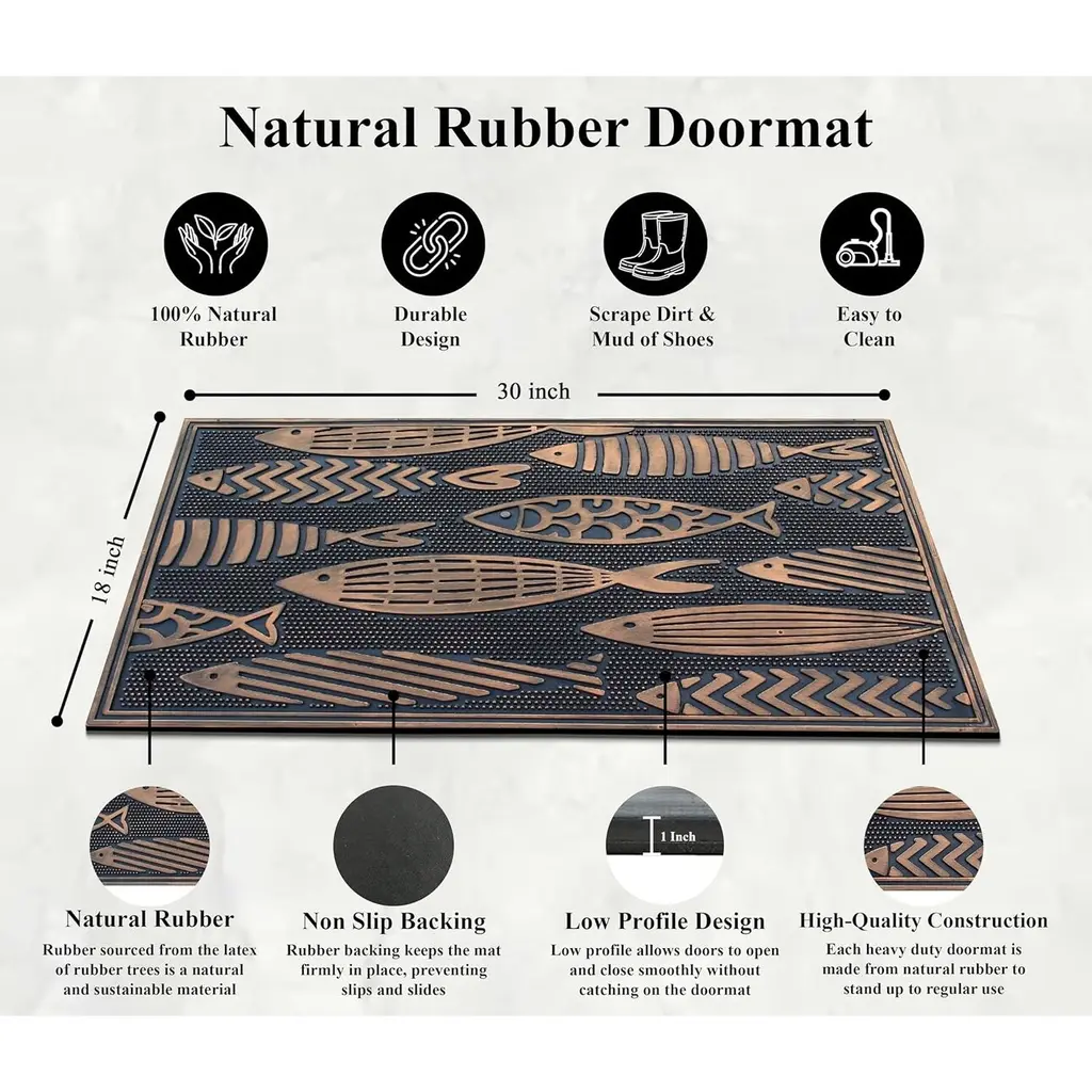 A1hc Rubber Pin Welcome Door Mats, Hand Finished, Non-Slip Backing Rubber, Heavy Duty Floormats - 18"x30" - Nautical Fish