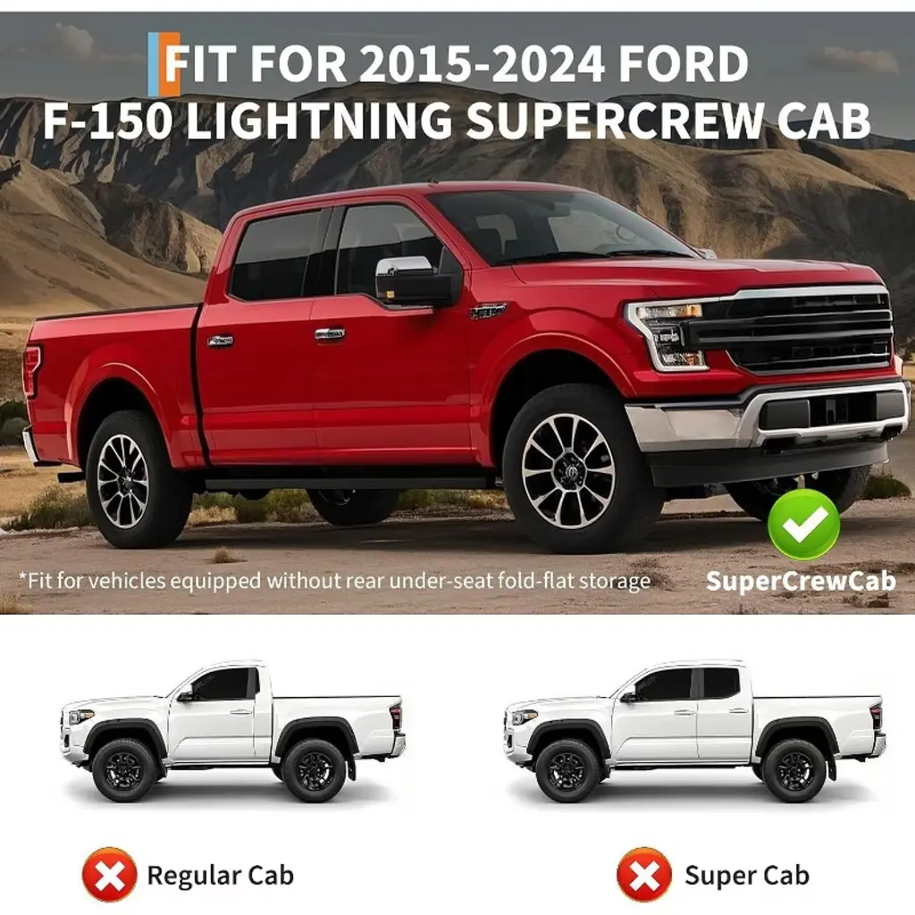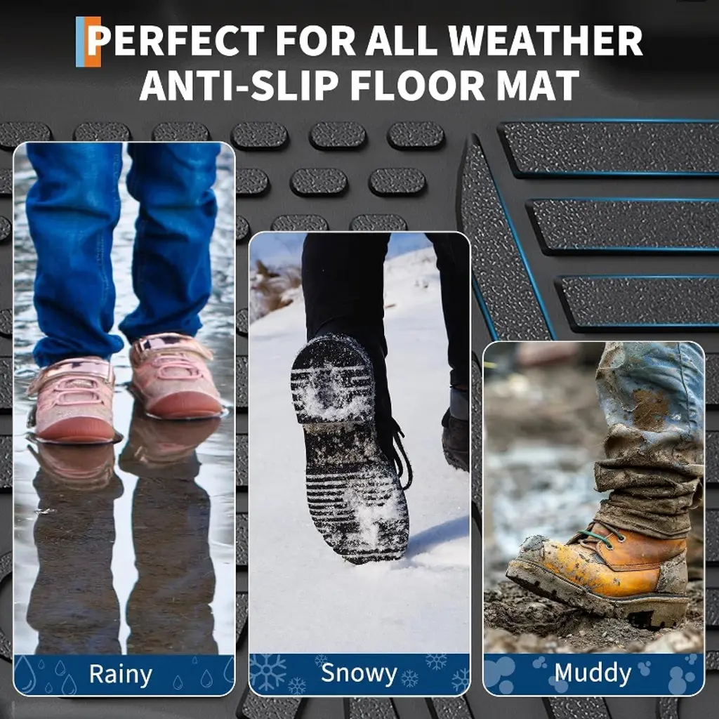 Upgrade your Ford F150 SuperCrew Cab with Acekool custom-fit TPE floor mats, engineered for 2015 to 2024 models. Using advanced 3D scanning, each liner is precision-molded to fit the unique curves of your truck and lines up with factory retention points for a seamless, slip-resistant fit that feels original. Built for everyday life, Acekool mats feature a 5mm thick TPE body with 2.5-inch raised edges, locking in dirt, snow, and spills to keep your interior looking new. The tough, odor-free TPE resists chemicals and road salt, holding up comfortably in extreme cold or heat. Cleaning takes just seconds—simply rinse or wipe the mats to restore them. The anti-slip texture ensures each mat stays put, even on rugged drives. Install each liner quickly with no tools and enjoy protection tailored for your vehicle’s exact needs. Front and rear liners included for complete coverage.