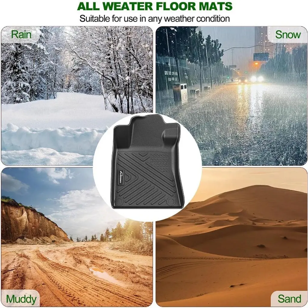 Upgrade your Ford F150 SuperCrew Cab with Acekool custom-fit TPE floor mats, engineered for 2015 to 2024 models. Using advanced 3D scanning, each liner is precision-molded to fit the unique curves of your truck and lines up with factory retention points for a seamless, slip-resistant fit that feels original. Built for everyday life, Acekool mats feature a 5mm thick TPE body with 2.5-inch raised edges, locking in dirt, snow, and spills to keep your interior looking new. The tough, odor-free TPE resists chemicals and road salt, holding up comfortably in extreme cold or heat. Cleaning takes just seconds—simply rinse or wipe the mats to restore them. The anti-slip texture ensures each mat stays put, even on rugged drives. Install each liner quickly with no tools and enjoy protection tailored for your vehicle’s exact needs. Front and rear liners included for complete coverage.