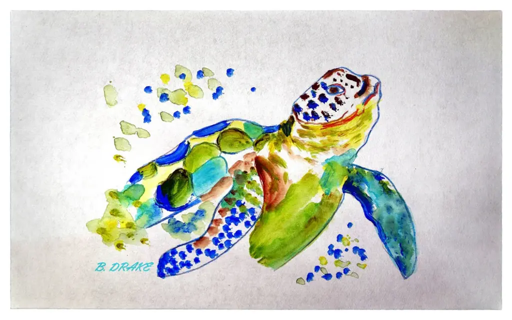 Betsy Drake Blue Sea Turtle 30 Inch By 50 Inch Comfort Floor Mat