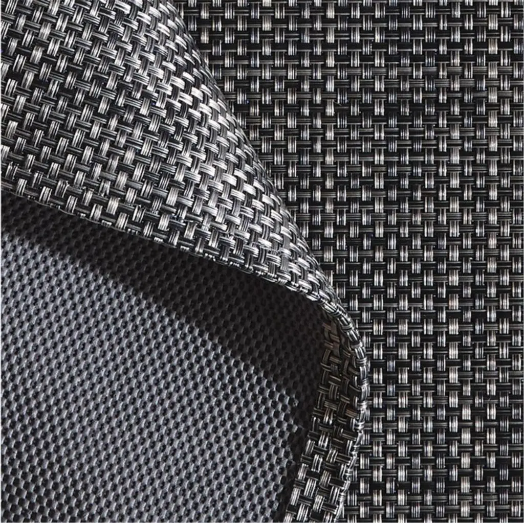 Rich in texture, this mat's classic basketweave showcases Chilewich's signature range of colors, in this case a tonal array of dark grey. Each mat is woven of PVC yarns treated with TerraStrand, a proprietary compound that's phthalate-free and contains renewable vegetable compounds that replace petroleum-based plasticizers used to soften yarns. Microban antimicrobial protection shields the rug against bacteria, mold and mildew that cause stains and odors.