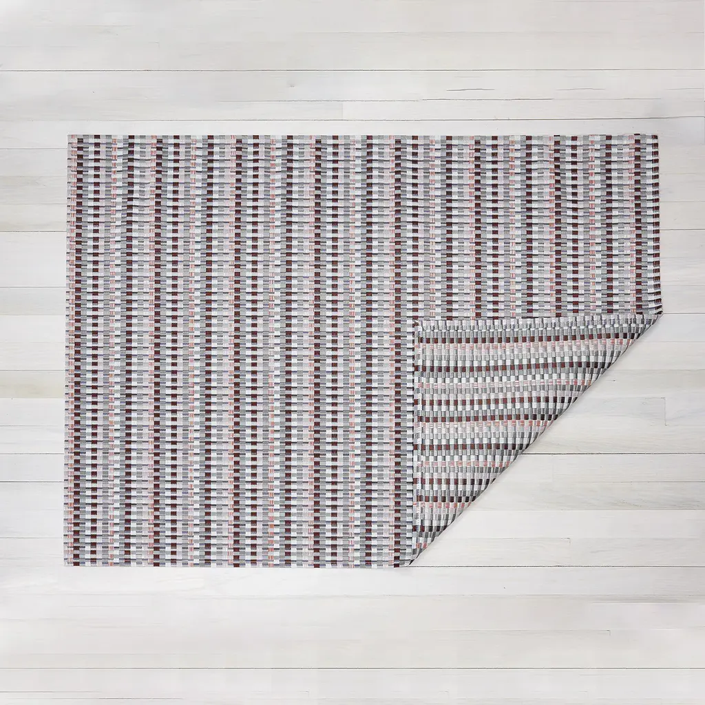 Named for an integral element of the loom on which they were developed, the Chilewich Heddle Floormats are easy-to-clean, extremely durable and suitable for indoor/outdoor use. On a loom, the yarns of each warp thread are threaded through the eye of a heddle, using a technique similar to the threading of a sewing needle. To create the weave structure of the Chilewich Heddle Floormat, the heddles were lowered and lifted in specific sequences that were inspired by Bauhaus textiles. The result is a weighty, flat-woven field composed of subtle stripes and graphic floating yarns. Made in the USA with TerraStrand® and Microban®. To clean the Chilewich Heddle Floormat, vacuum it or use a mop and air dry thoroughly. Do not machine wash or iron.