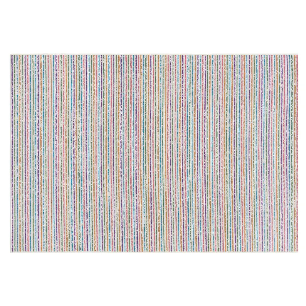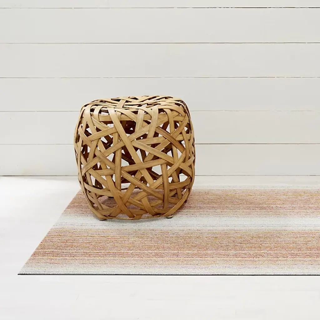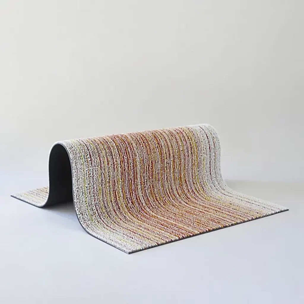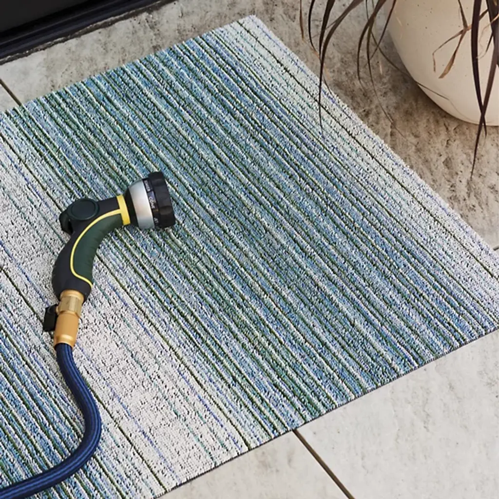 Keep floors clean on the inside by walking across the artful striations of the Fade Stripe Shag Floormat from Chilewich. It gives a secure sensation on the floor with a gripping vinyl backing. On top, mold-resistant vinyl packs into a tight composition that catches dirt while remaining easy to clean. The color-treated strands guide the eyes as a pattern of lines on the floormat. These lines rest alongside each other in generous passes of inviting color.
