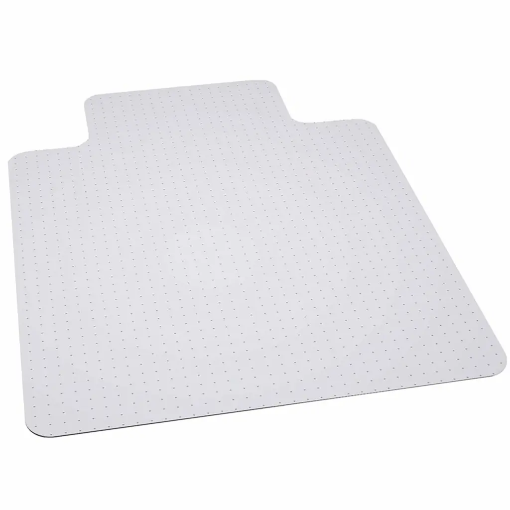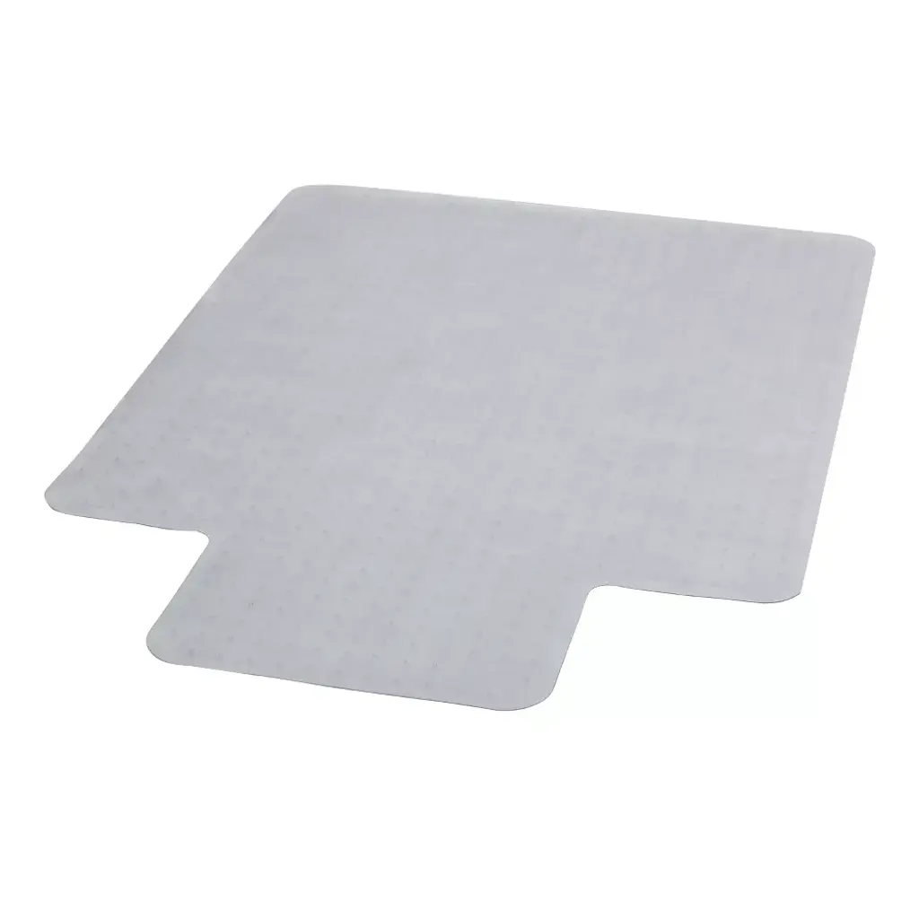 Move around easily in your carpeted workspace with this clear vinyl, commercial grade chair mat that will prevent carpet wear caused by chair casters. It features a scuff and slip resistant top surface for durability and safety. The underside has a gripper back to firmly anchor the chair mat on low pile carpet, protecting your carpet from spills and damage. The mat includes a protruding lip to protect the carpet under the desk and allow the chair to roll even when it's all the way under the desk. Additional Features: Straight Edge transitions from mat to floor, Lip Size: 25"W x 12"L, 1 Year Limited Warranty, Manufactured to meet GREENGUARD Gold specifications for low chemical emissions