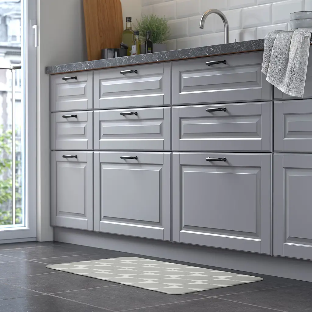 GÅNGPASSAGE Kitchen mat - gray/white 1 ' 6 "x2 ' 4 ". Easy to keep clean since the surface is oil- and water-repellent. The mat can be used on all types of flooring, even those with underfloor heating. You can combine several mats to suit your floor layout or cover a larger area.