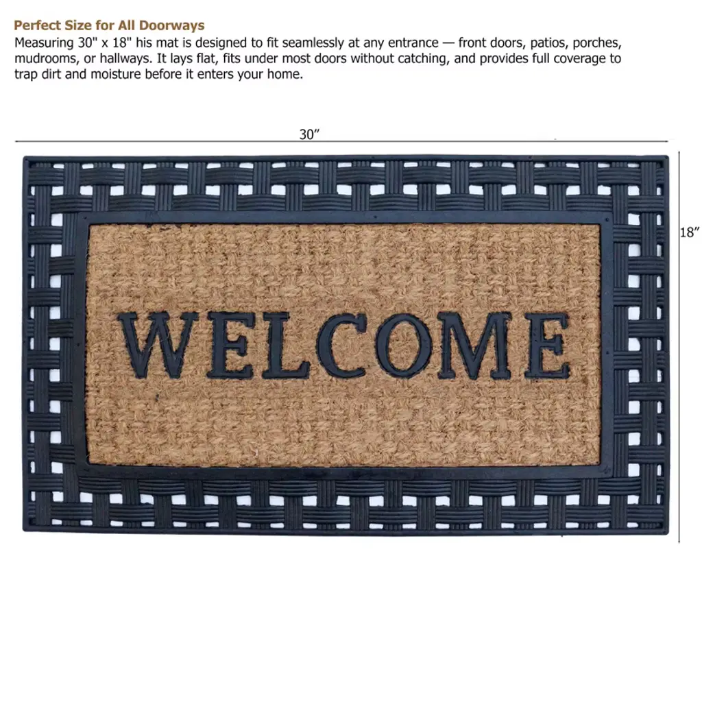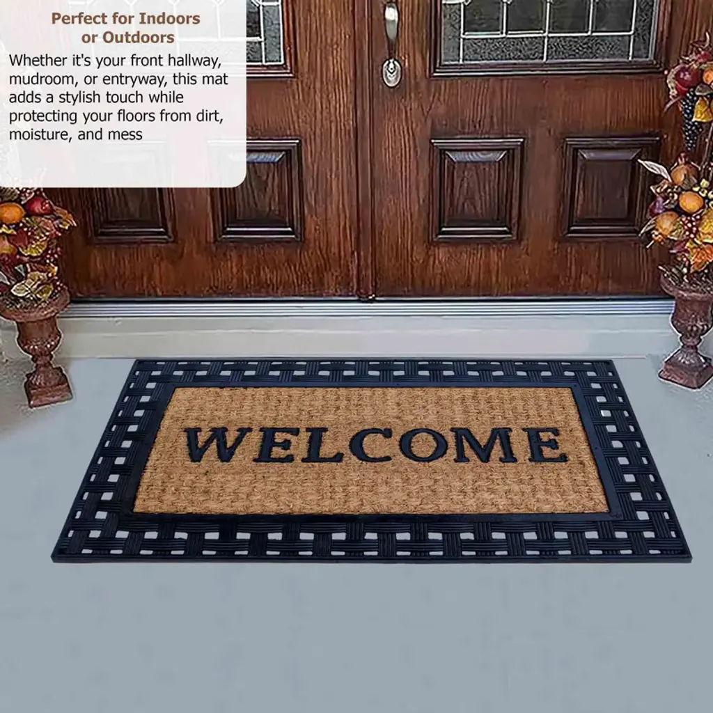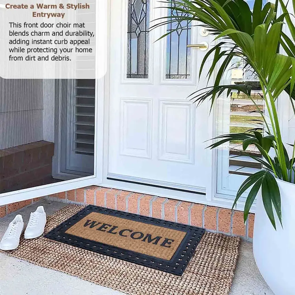 Gardenised Heavy Duty Coco Coir Doormat With Non Slip Pvc Baking Embossed Welcome Design Coconut Fiber Floor Mat 18x30", Elegant Welcome