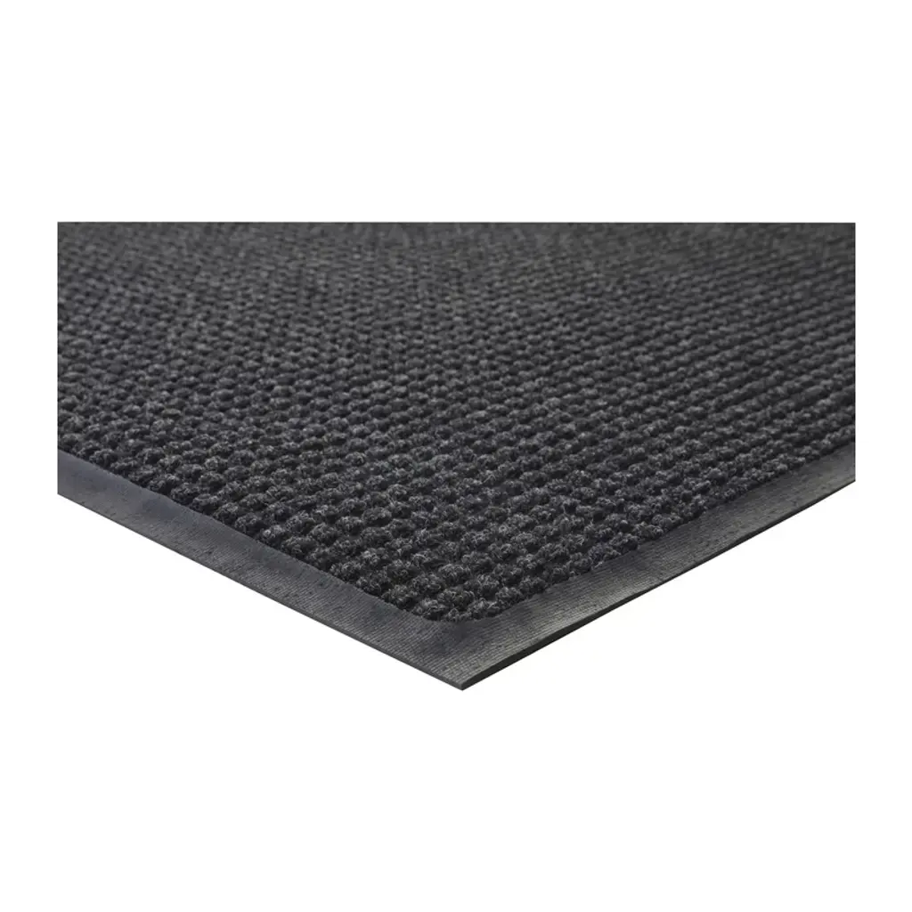 Floor mat keeps both your interiors and the environment clean, safe and healthy. The carpeted surface is made from post-consumer material to promote an eco-friendly design. Durable, crumb rubber backing is wear-resistant. Bi-level construction traps dirt below the surface to effectively wipe your shoes clean while the beveled edge reduces trips and falls. This easy-to-clean mat is designed for hard surface floors and low-pile carpets.