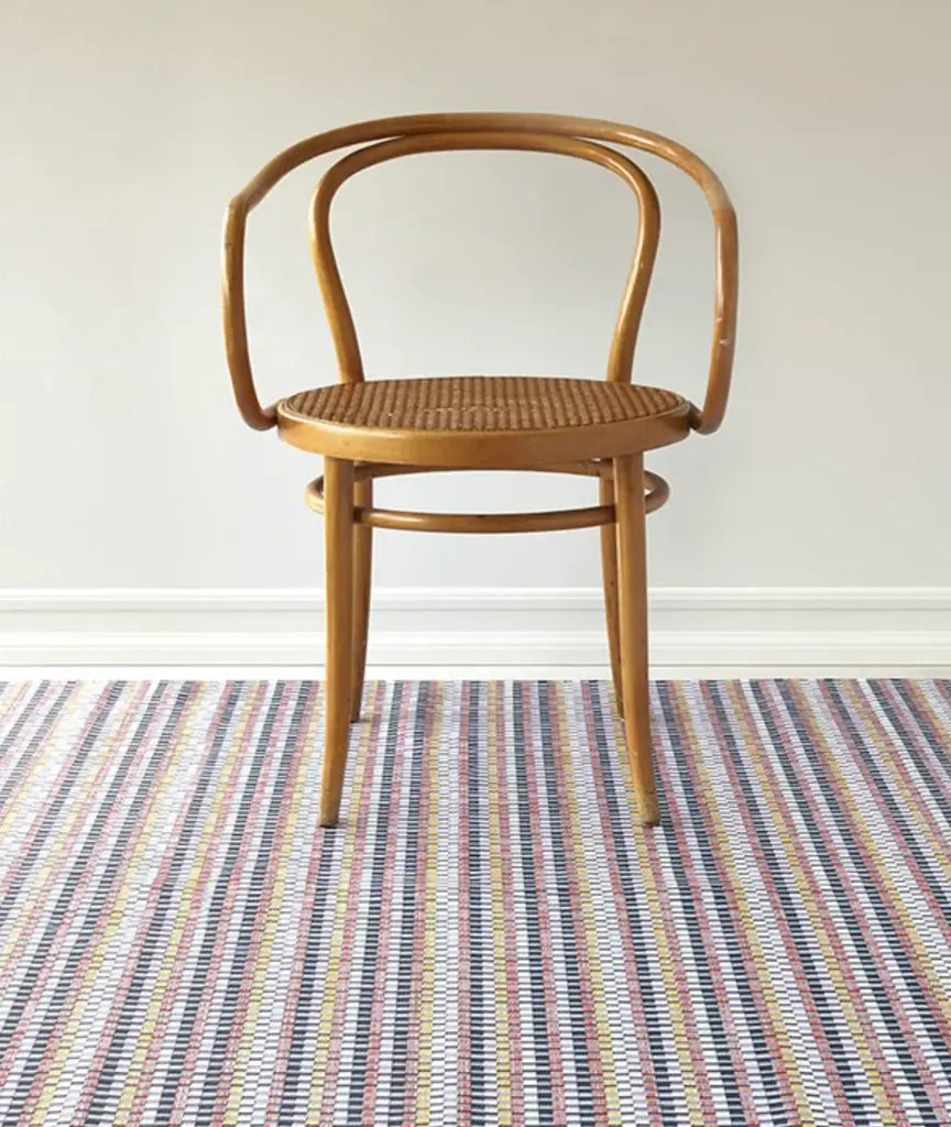 Inspired by Bauhaus textiles and debuting 100 years after the legendary design school was founded, Heddle explores the interaction of weaving and color. Areas of more graphic, floating yarns are juxtaposed with flat-woven fields of subtle stripes. Composed of approximately 50% more yarns than our signature Basketweave, this especially substantial weave is unbacked and transitions easily between indoor and outdoor spaces. For over a decade, New York based designer Sandy Chilewich has been creating original and innovative vinyl products for the home. Her woven, tufted, molded and spun textiles are available in a range of vibrant and neutral hues that have become synonymous with the Chilewich brand name.