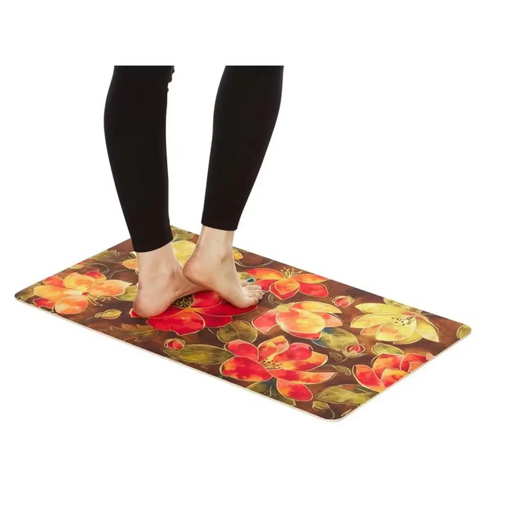 Brighten up your cooking experience with this superior kitchen mat. Colors easily complement already existing home décor for simple and chic design. Anti-fatigue mats are made of polyvinyl foam for better posture and long-lasting comfort while you perform all of your daily kitchen tasks. Non-slip surface and rubber skid-resistant backing help to keep the mat firmly in place while you work. Great for use in the kitchen sink, stove, or even laundry area.